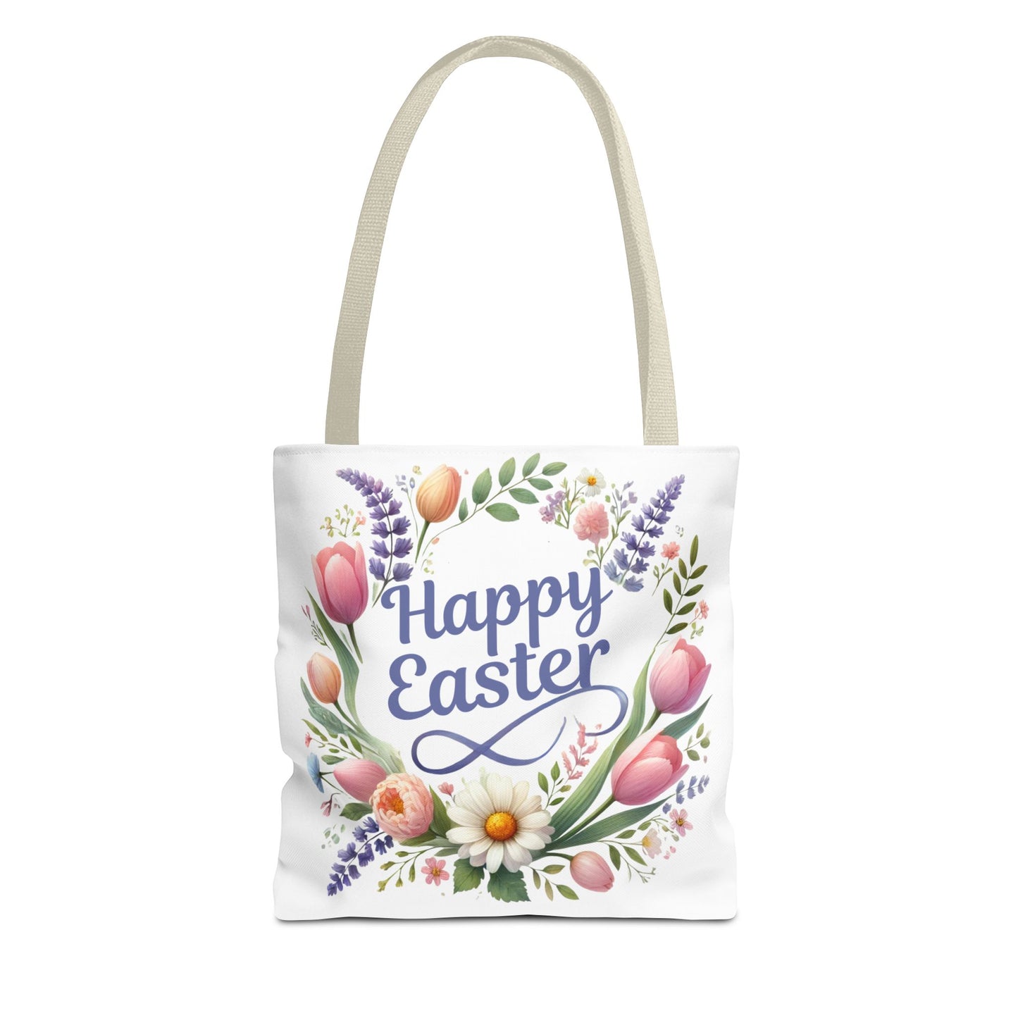 “Happy Easter” – Floral Wreath Tote Bag 🌸🐣👜