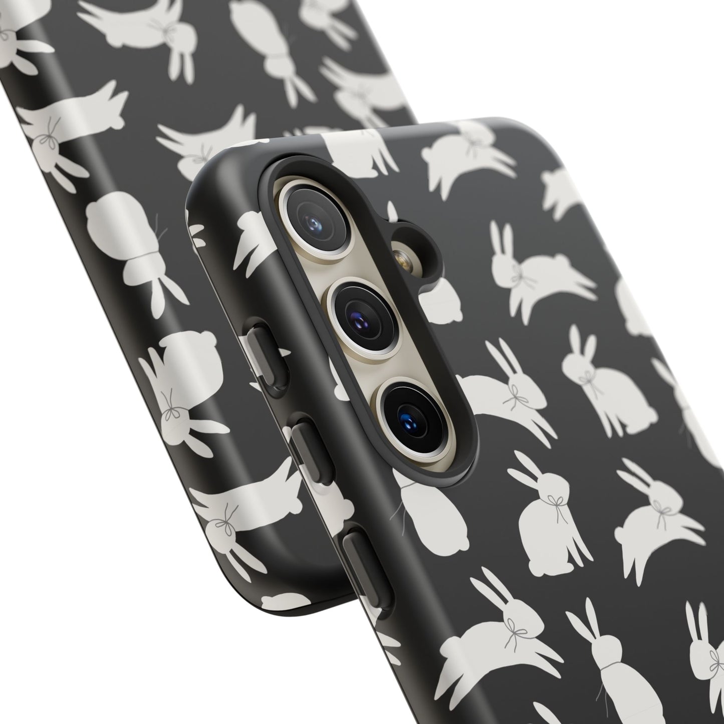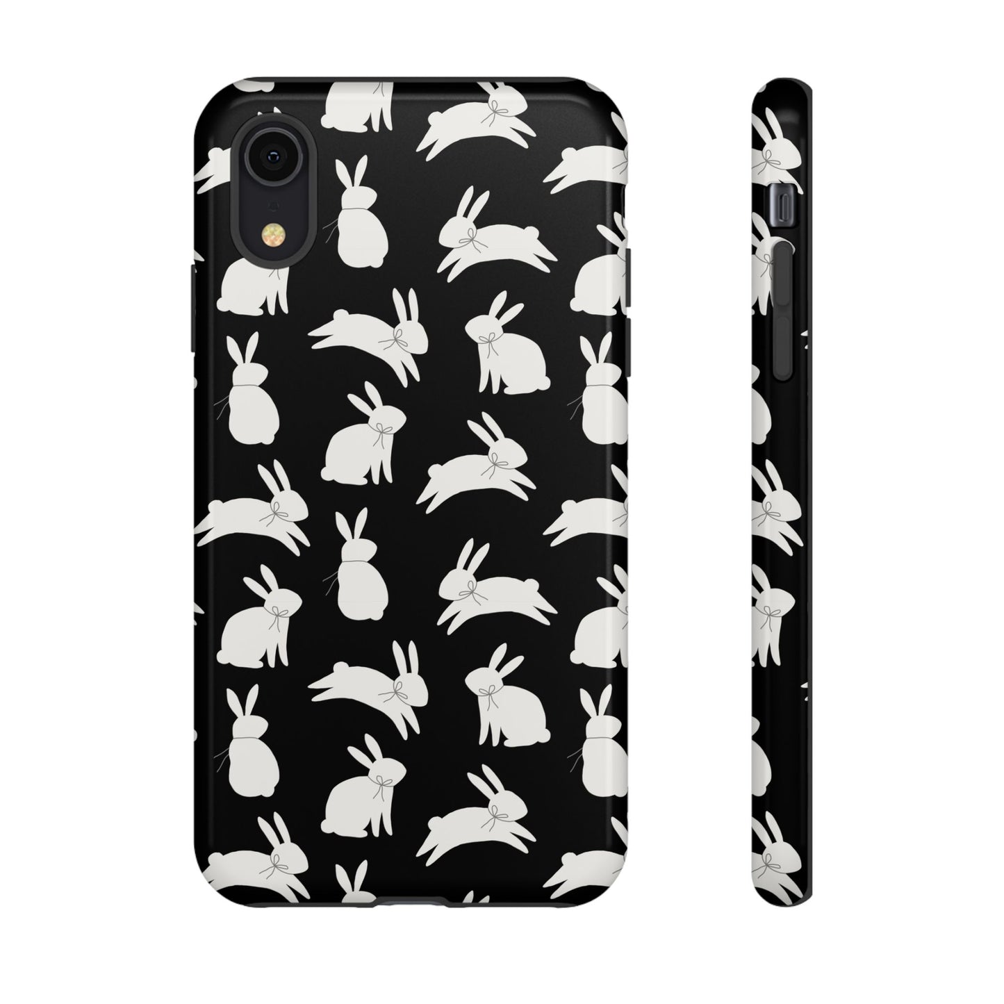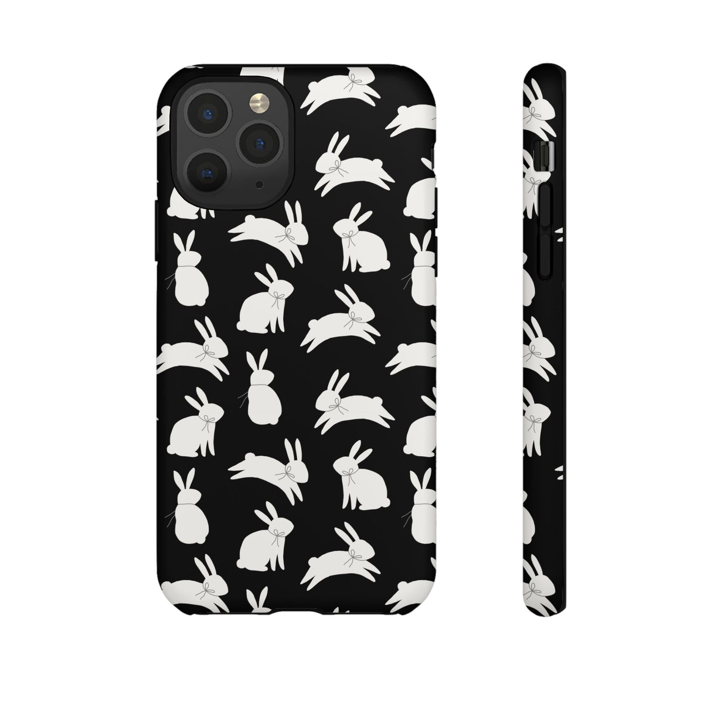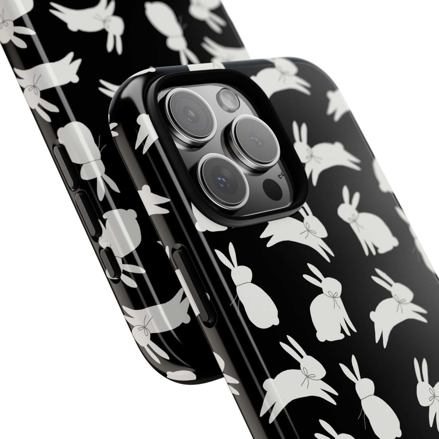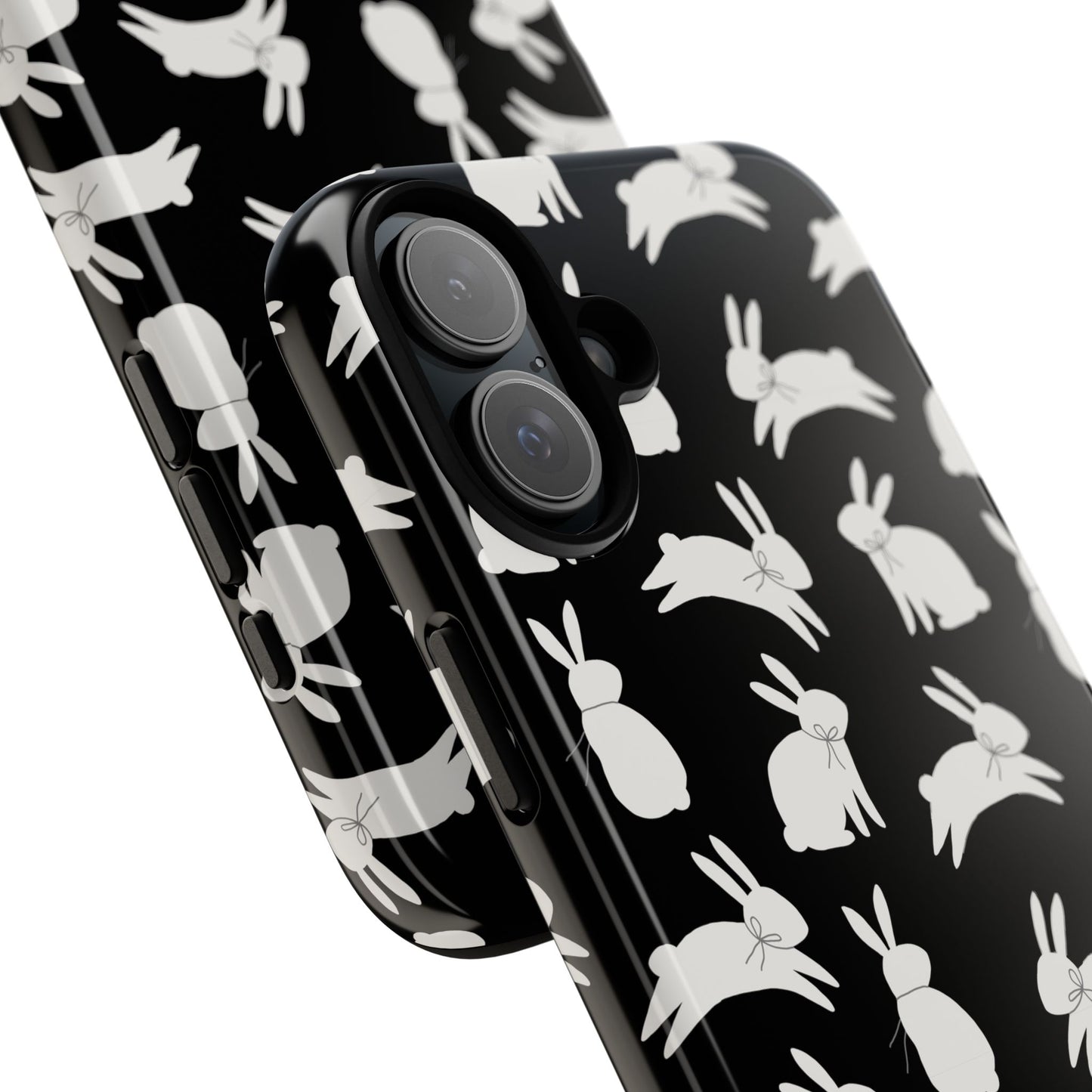 This glossy black bunny-patterned Tough Case is the perfect blend of playful vibes and serious protection. Covered in a chic all-over print of bow-tied bunnies, this case is here to turn heads and take hits (yep, itβs got a tough shell for a reason).