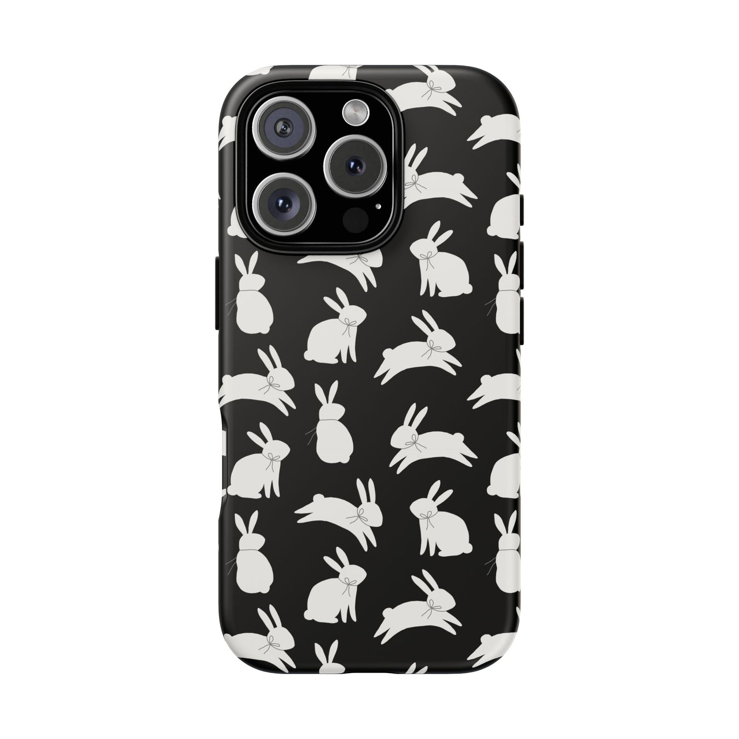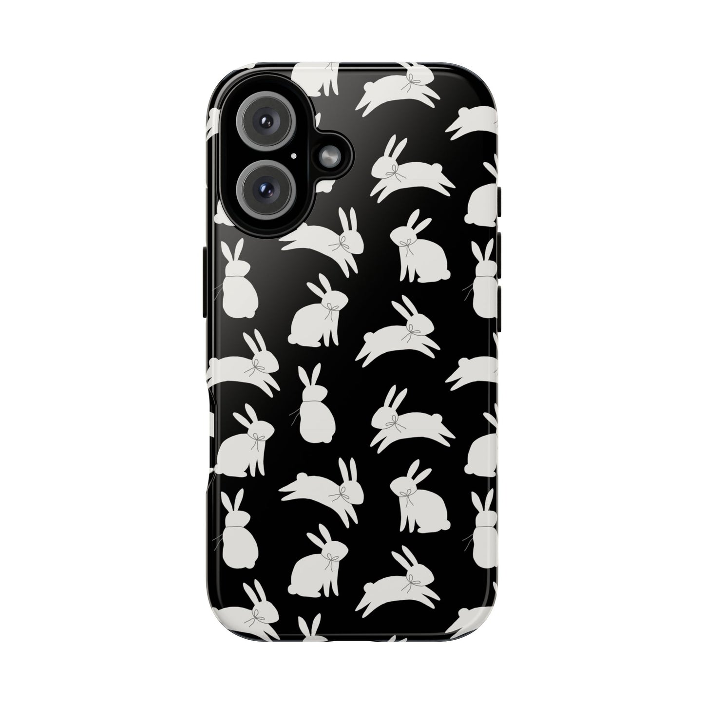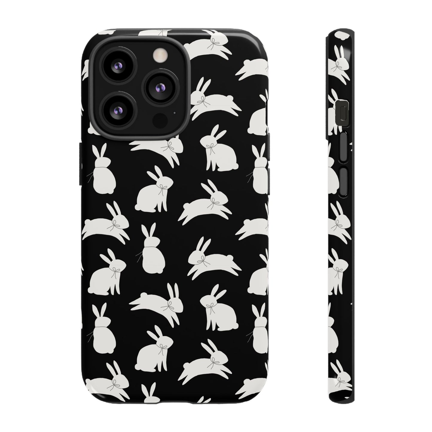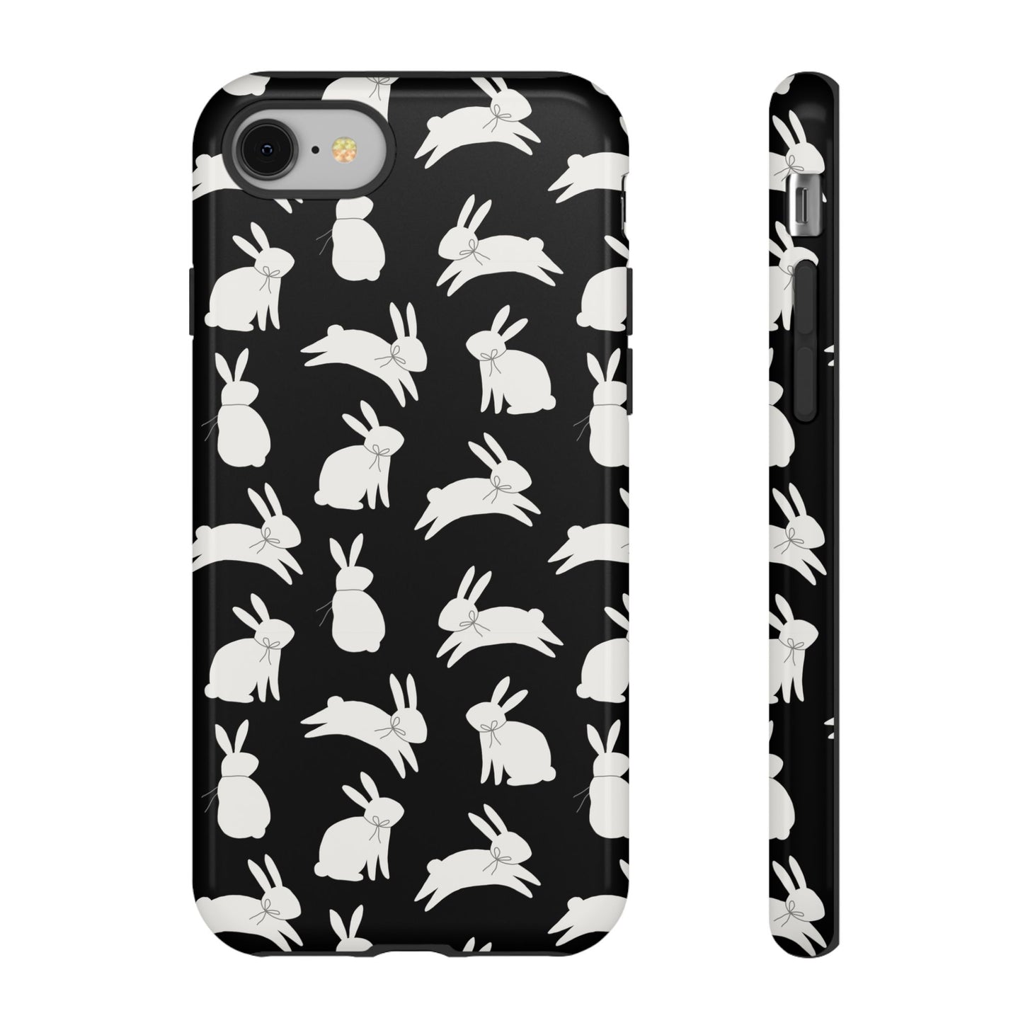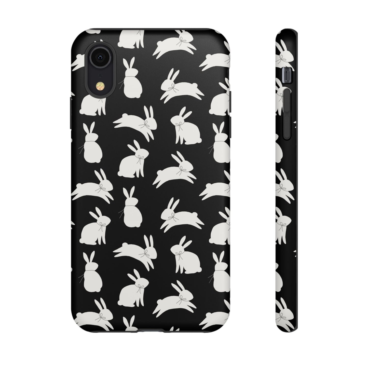 This glossy black bunny-patterned Tough Case is the perfect blend of playful vibes and serious protection. Covered in a chic all-over print of bow-tied bunnies, this case is here to turn heads and take hits (yep, itβs got a tough shell for a reason).
