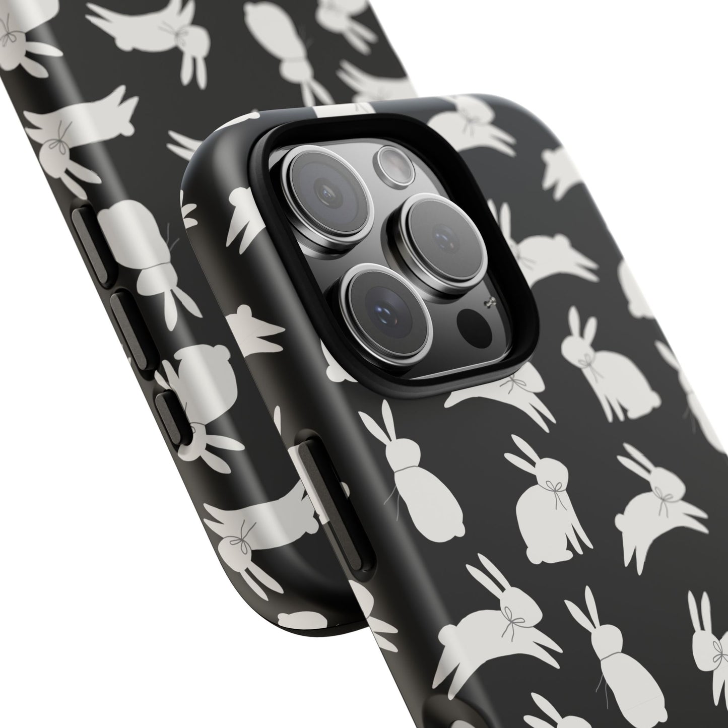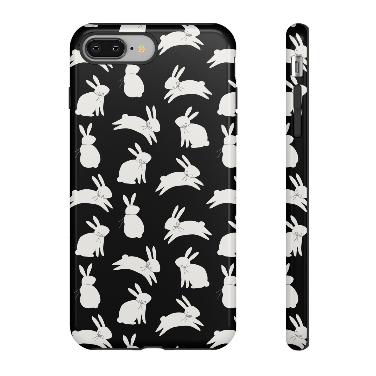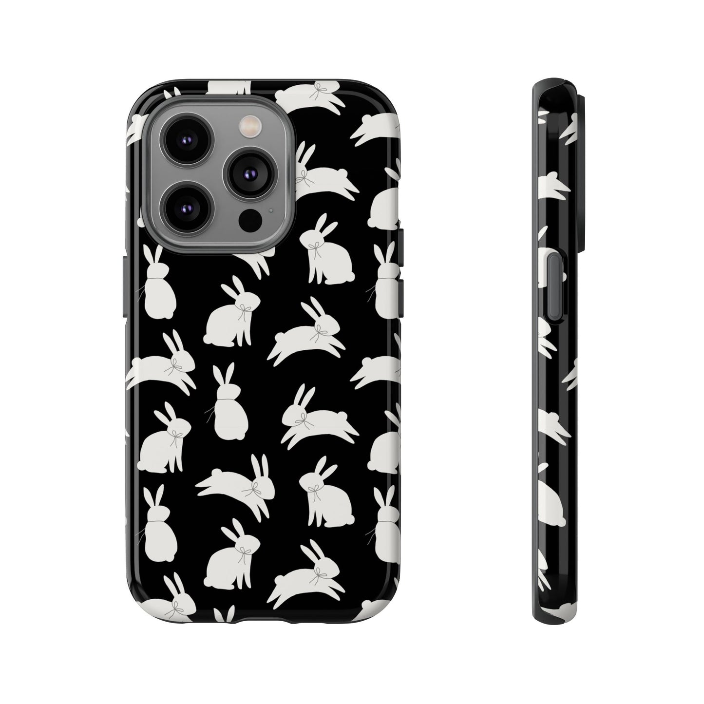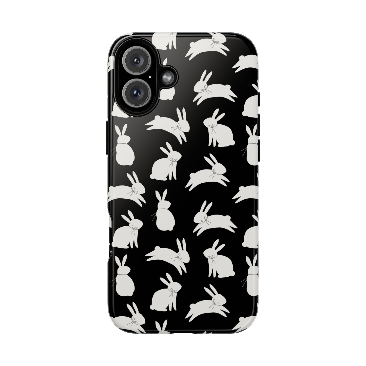 This glossy black bunny-patterned Tough Case is the perfect blend of playful vibes and serious protection. Covered in a chic all-over print of bow-tied bunnies, this case is here to turn heads and take hits (yep, itβs got a tough shell for a reason).