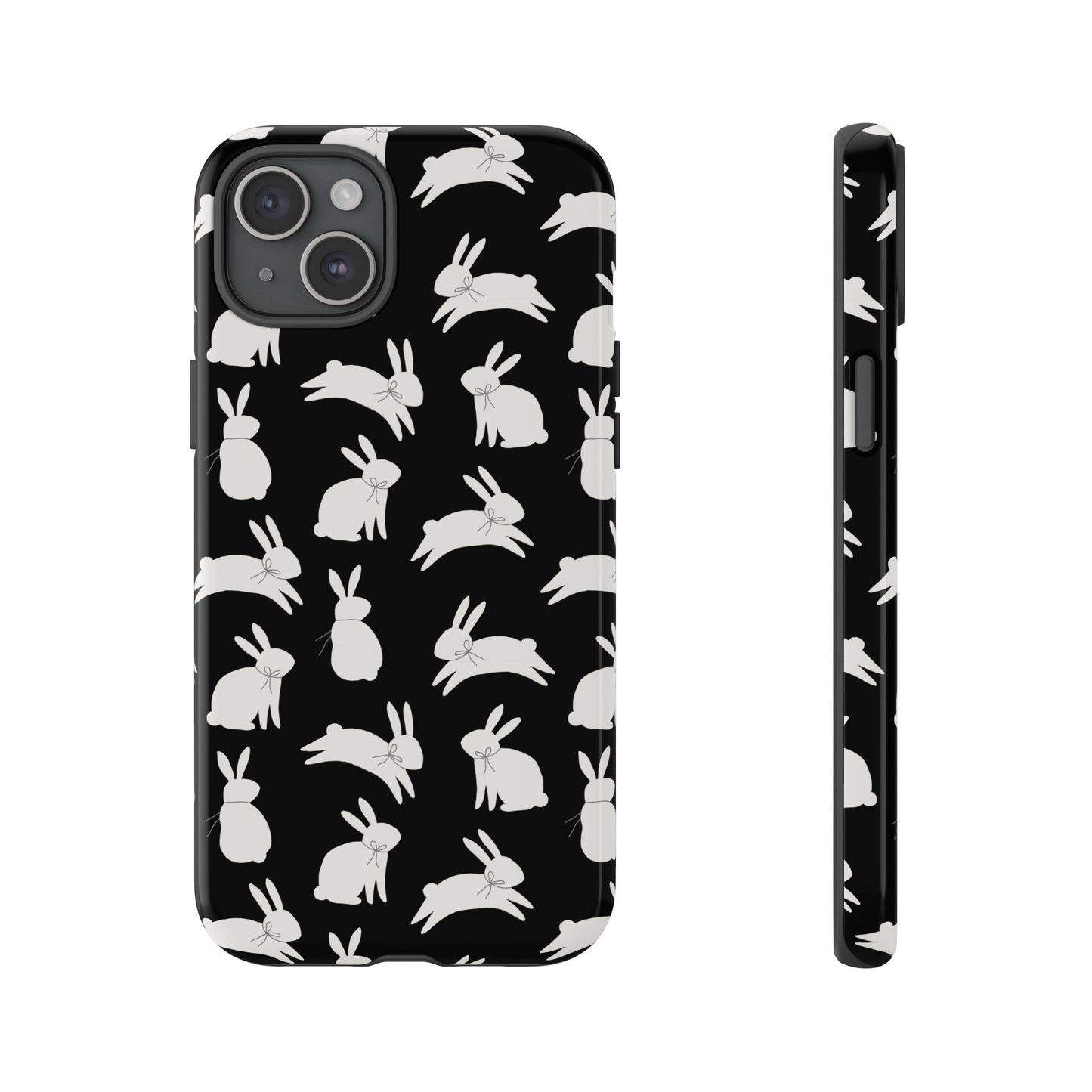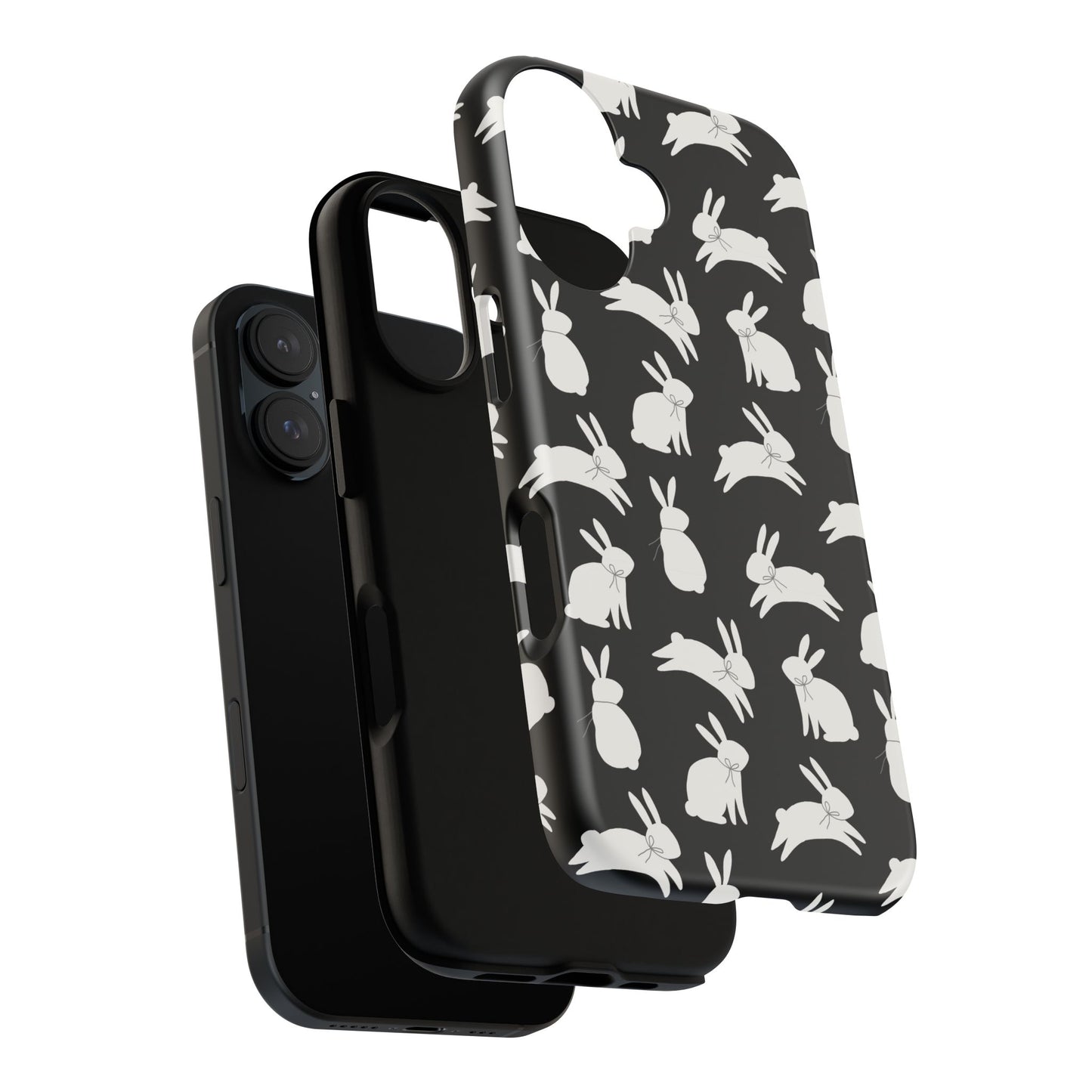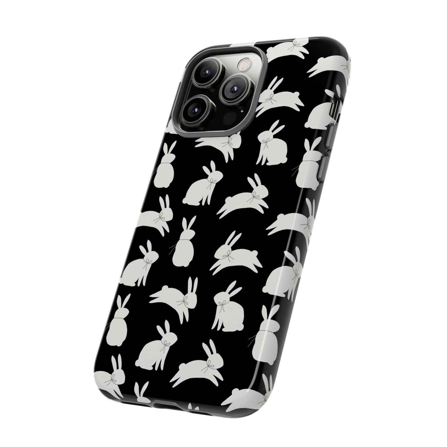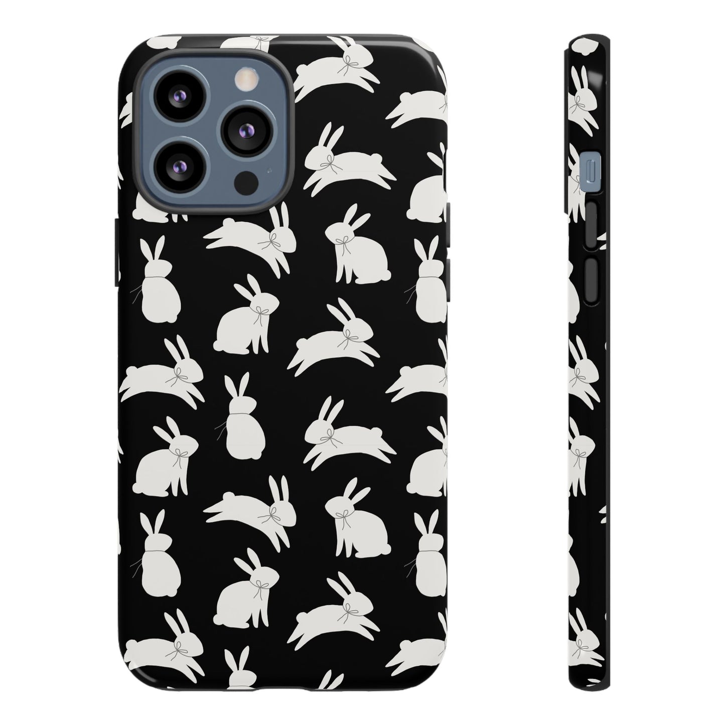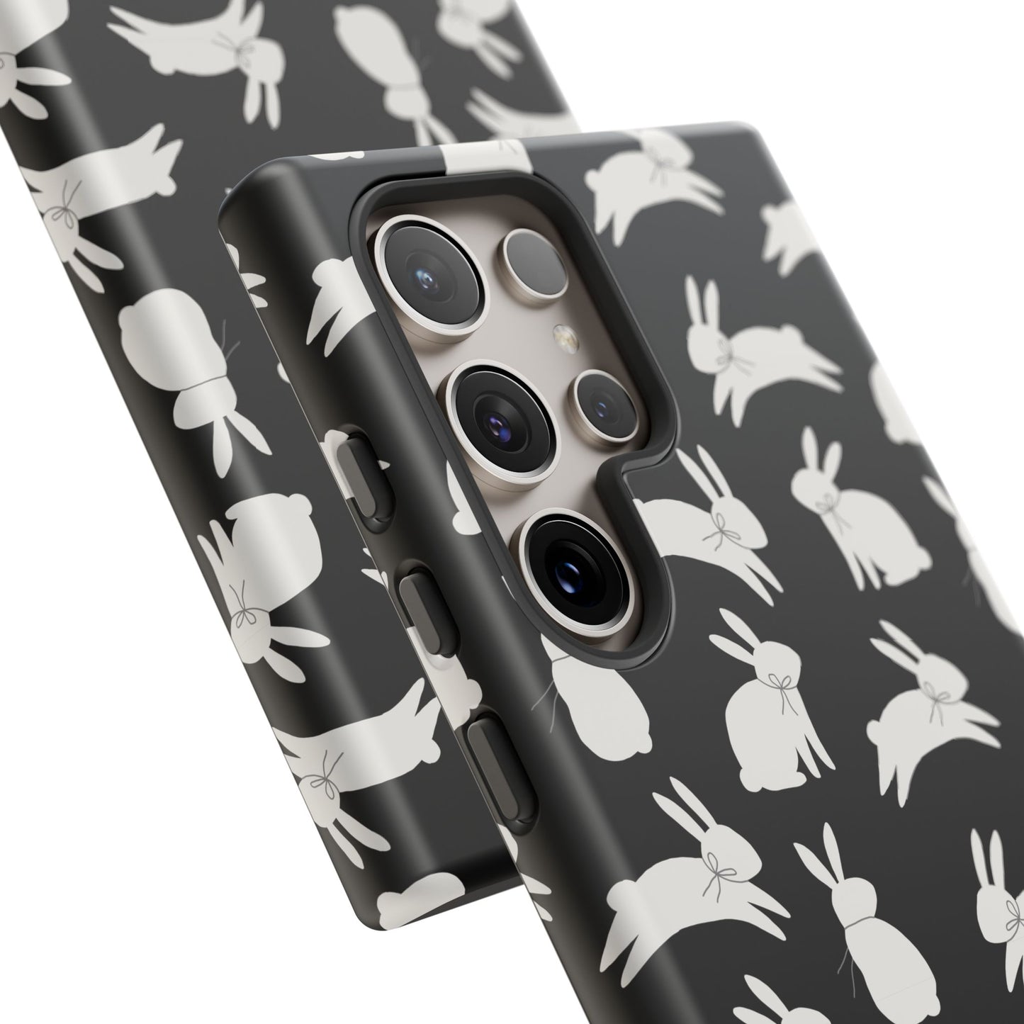 This glossy black bunny-patterned Tough Case is the perfect blend of playful vibes and serious protection. Covered in a chic all-over print of bow-tied bunnies, this case is here to turn heads and take hits (yep, itβs got a tough shell for a reason).