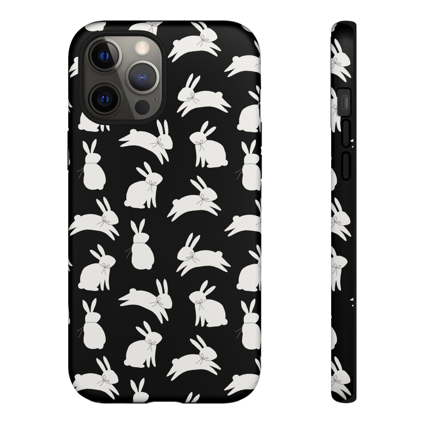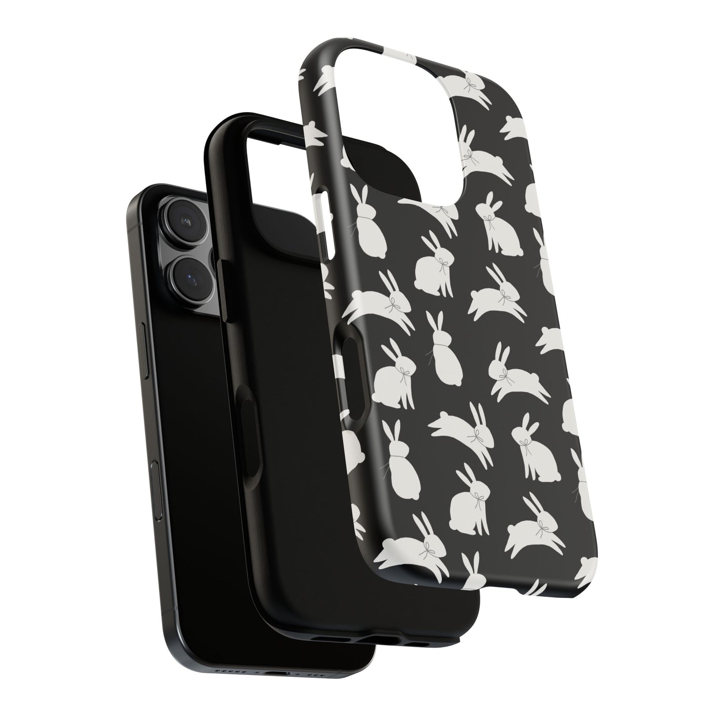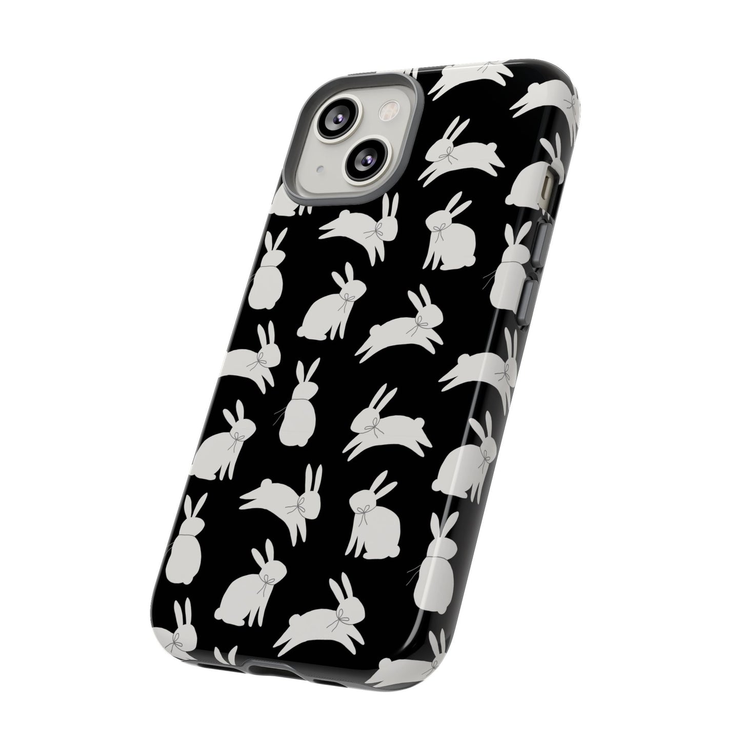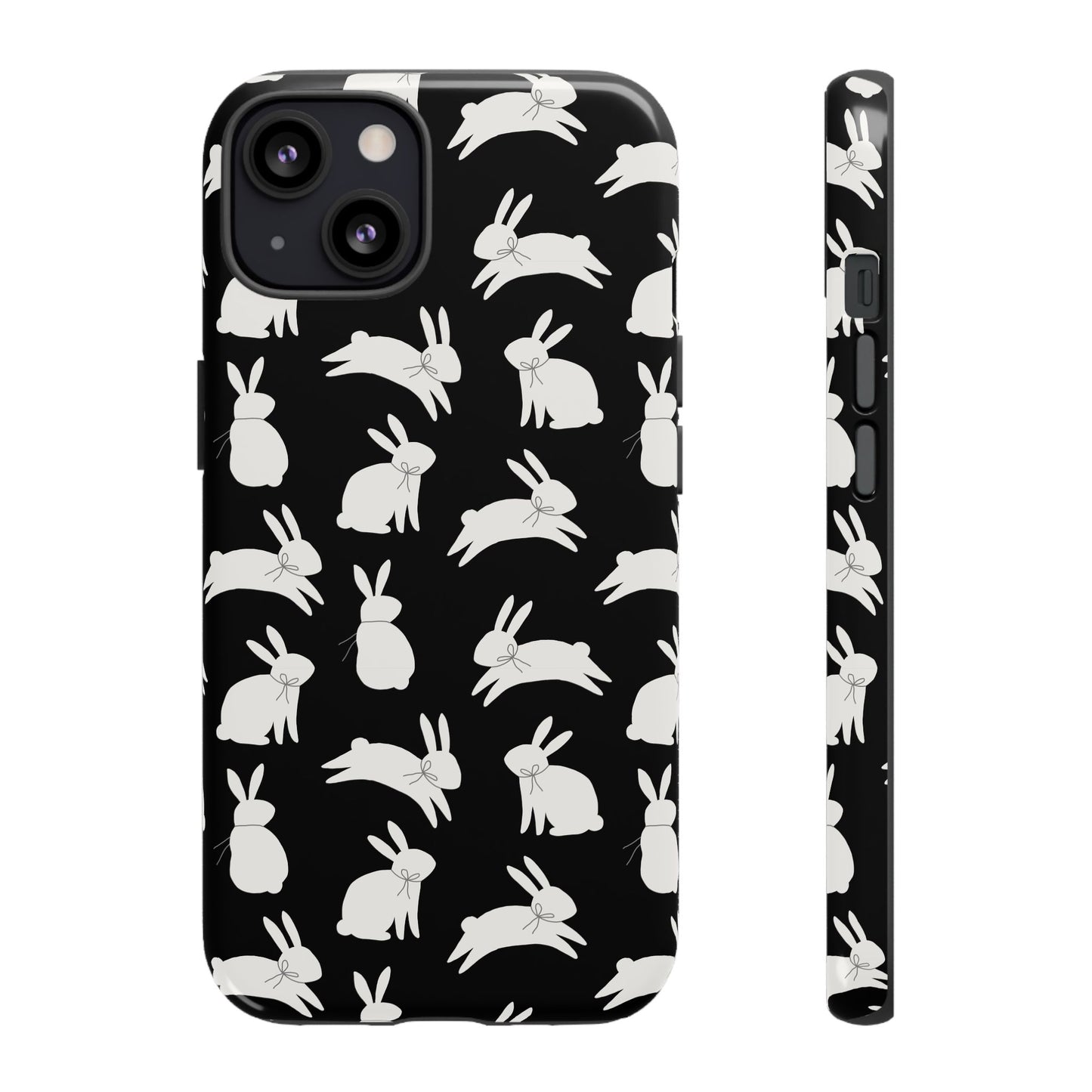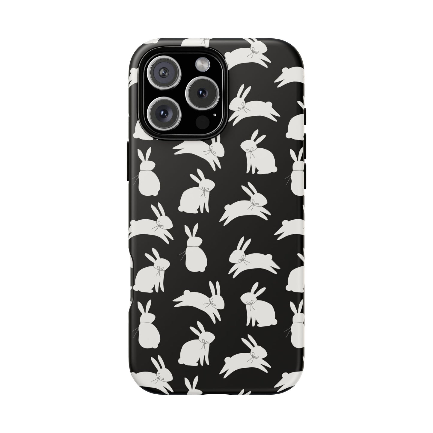 This glossy black bunny-patterned Tough Case is the perfect blend of playful vibes and serious protection. Covered in a chic all-over print of bow-tied bunnies, this case is here to turn heads and take hits (yep, itβs got a tough shell for a reason).