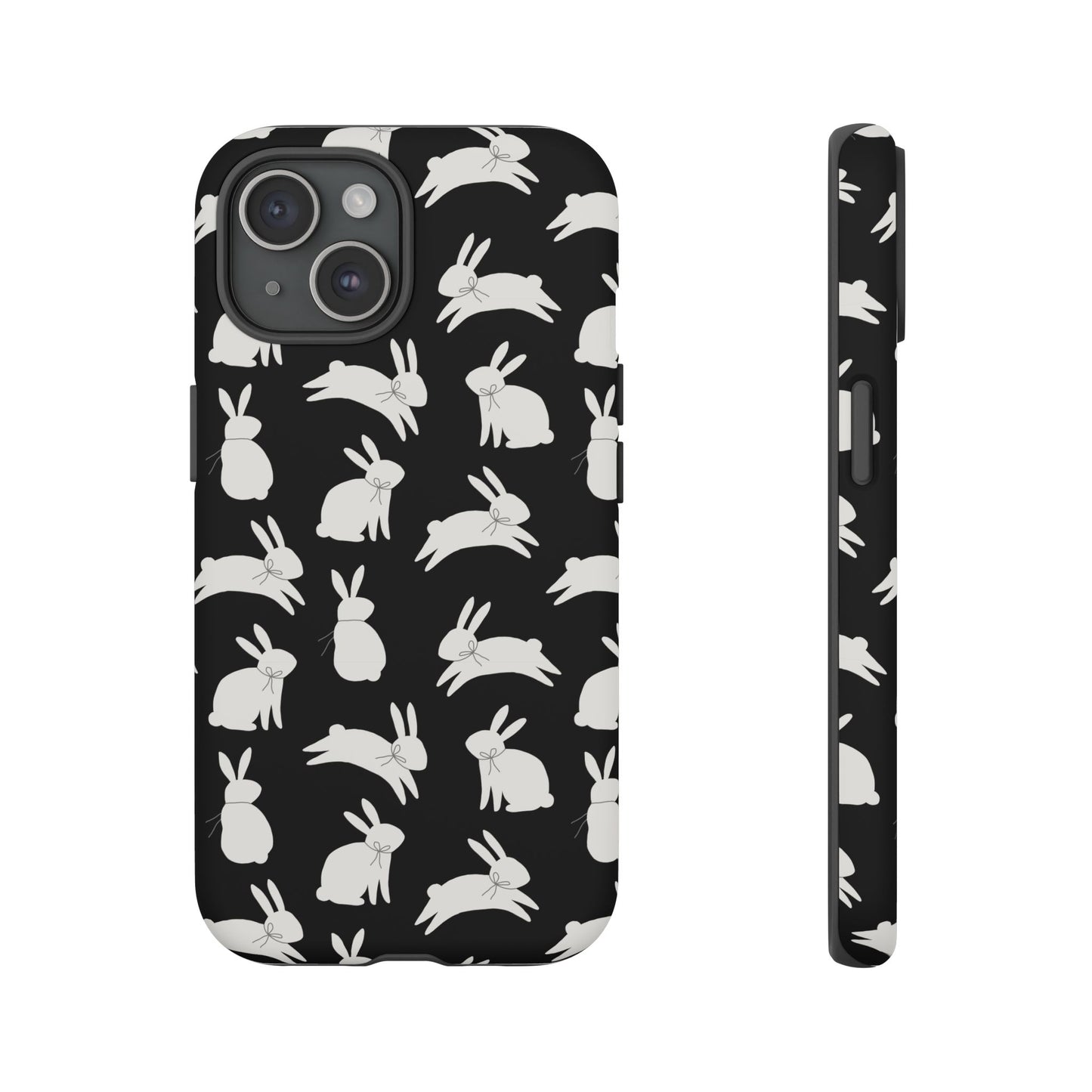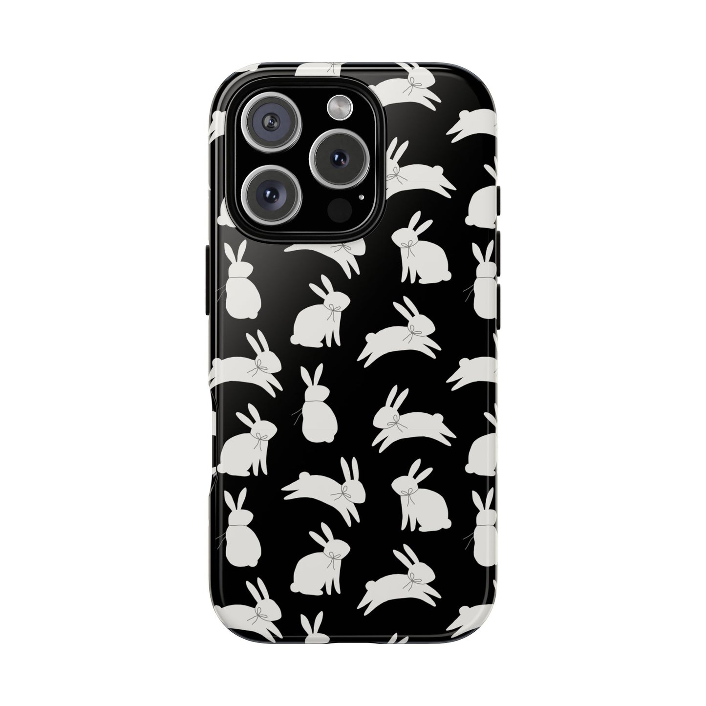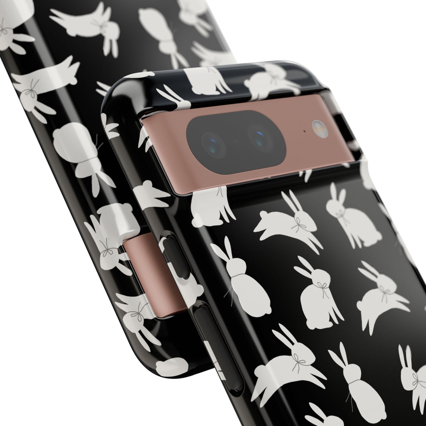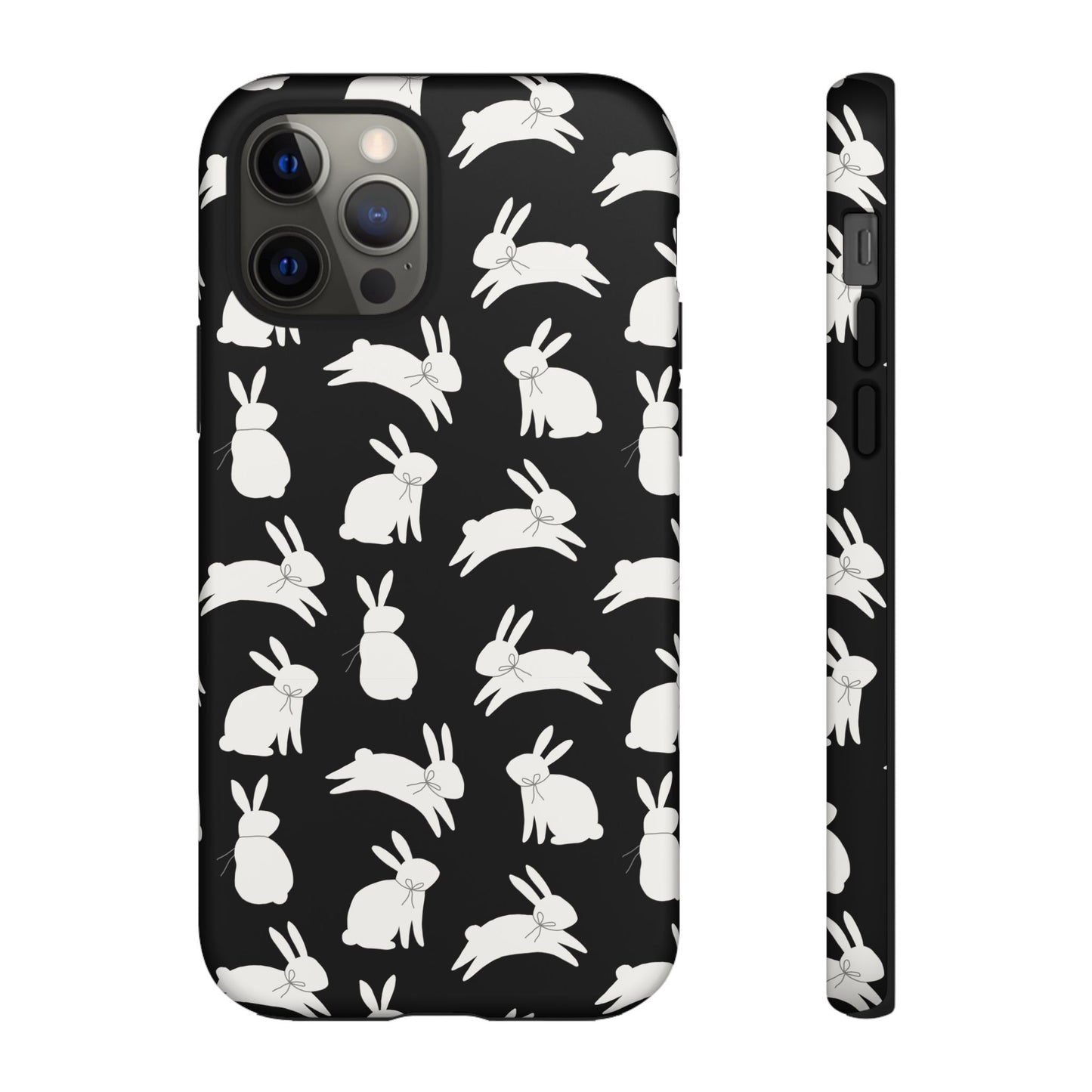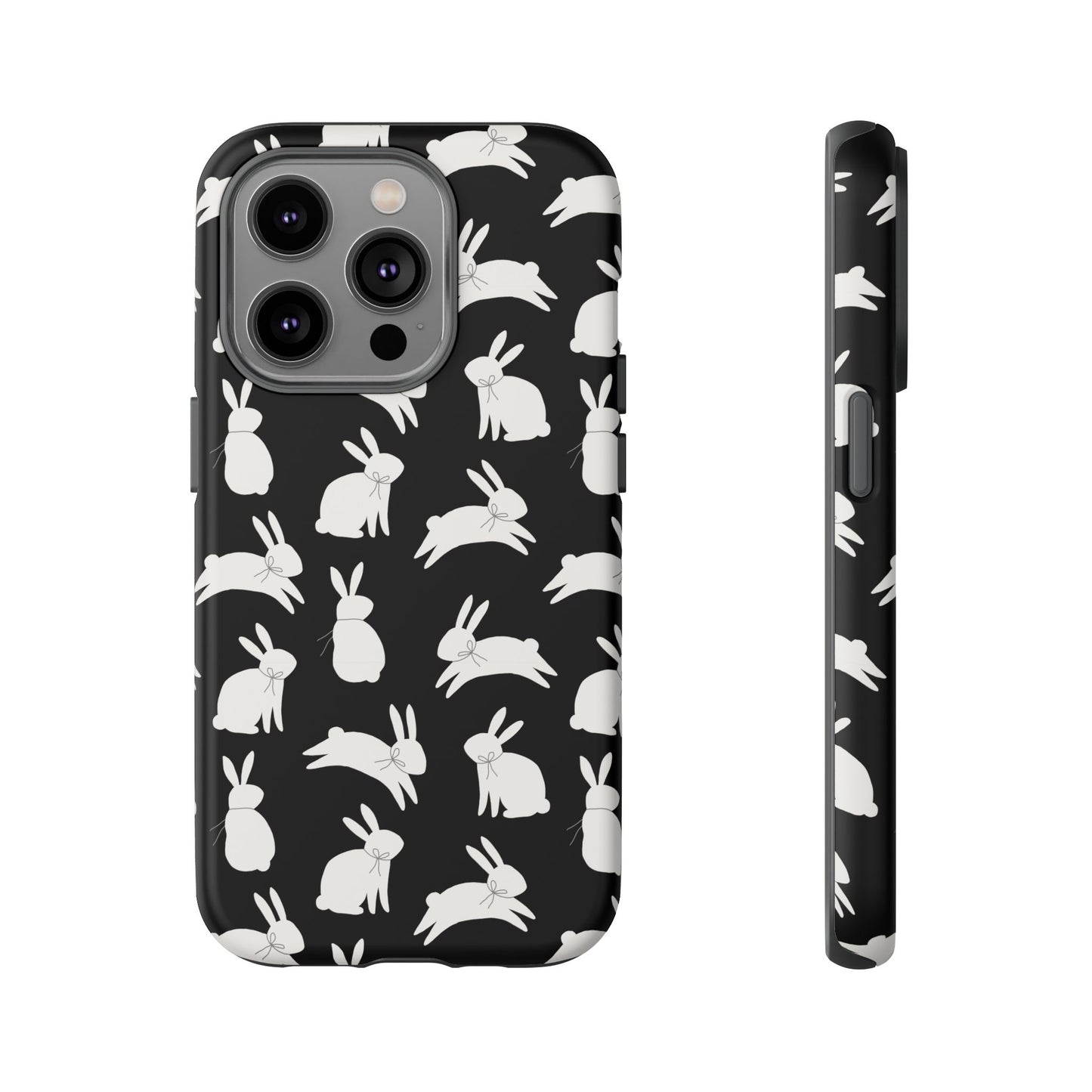 This glossy black bunny-patterned Tough Case is the perfect blend of playful vibes and serious protection. Covered in a chic all-over print of bow-tied bunnies, this case is here to turn heads and take hits (yep, itβs got a tough shell for a reason).