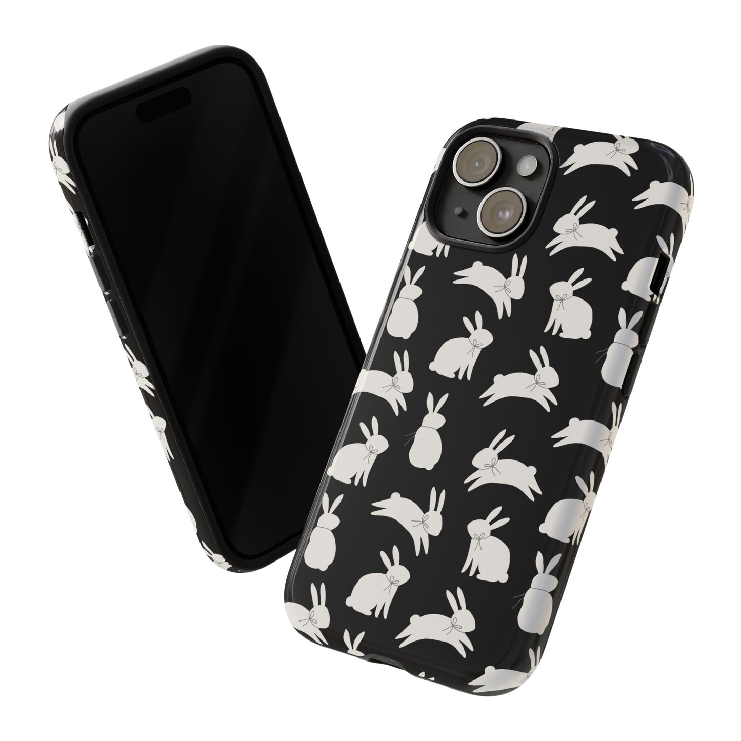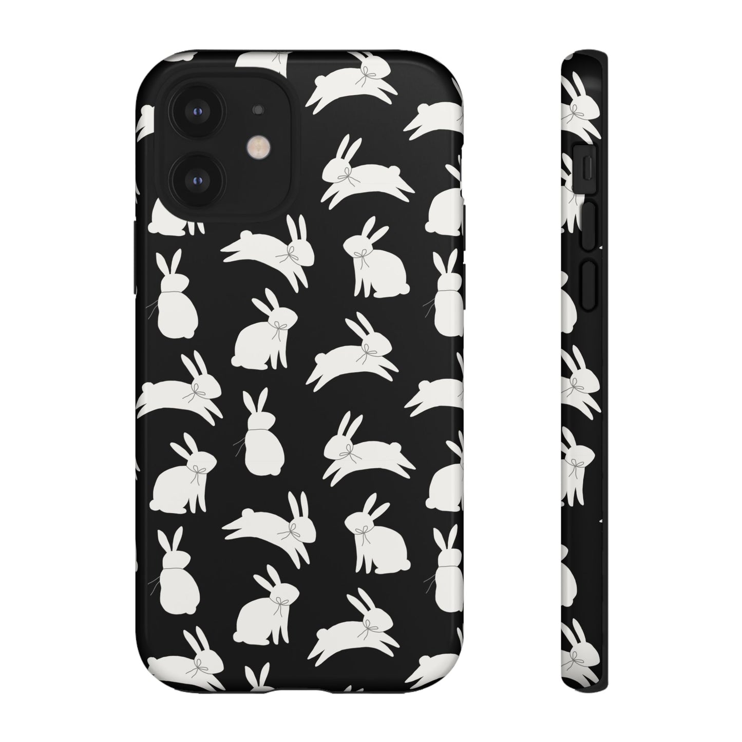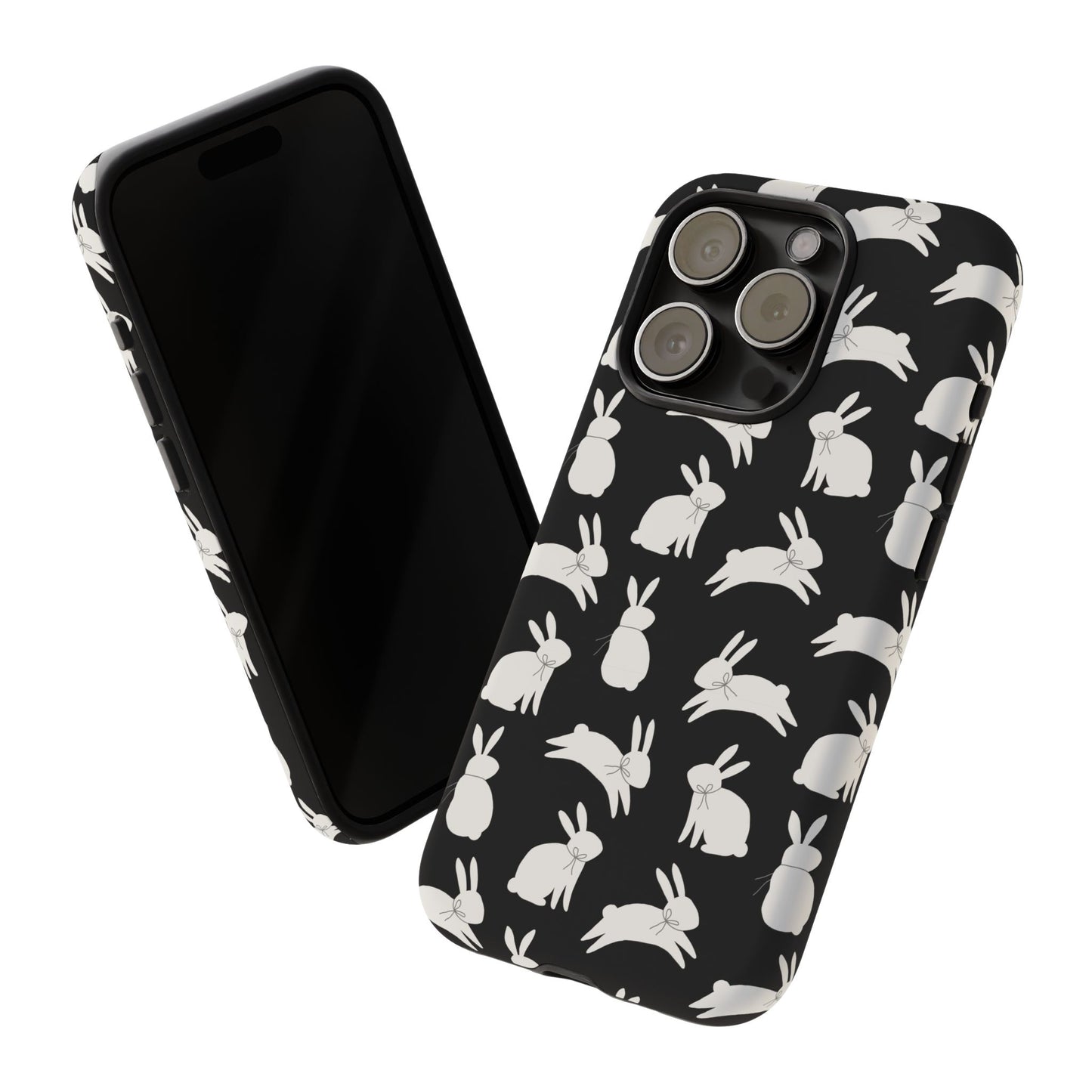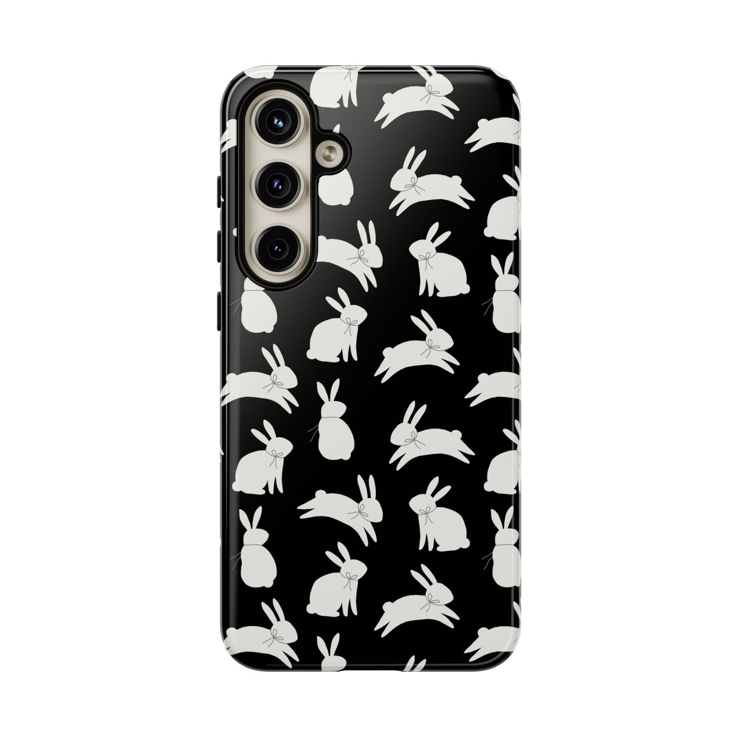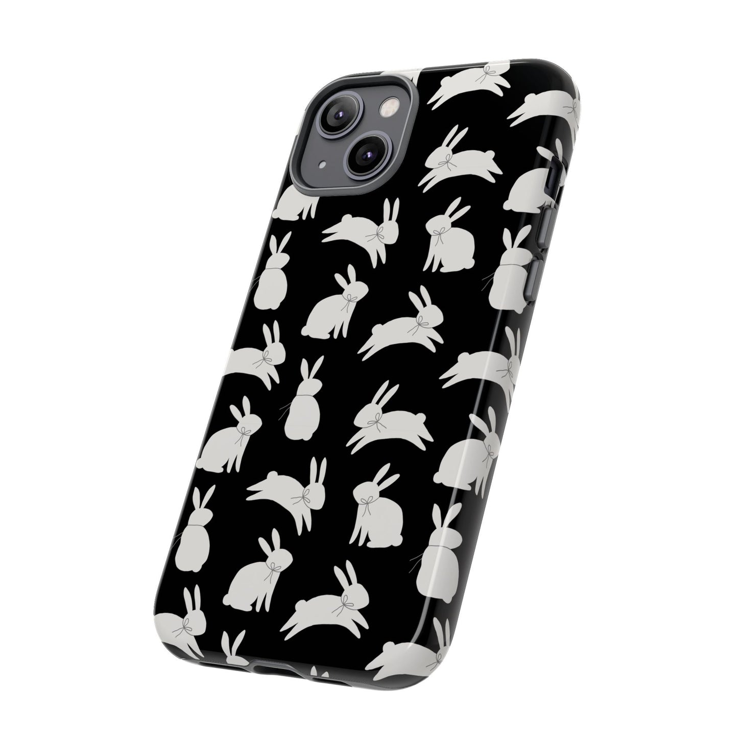 This glossy black bunny-patterned Tough Case is the perfect blend of playful vibes and serious protection. Covered in a chic all-over print of bow-tied bunnies, this case is here to turn heads and take hits (yep, itβs got a tough shell for a reason).