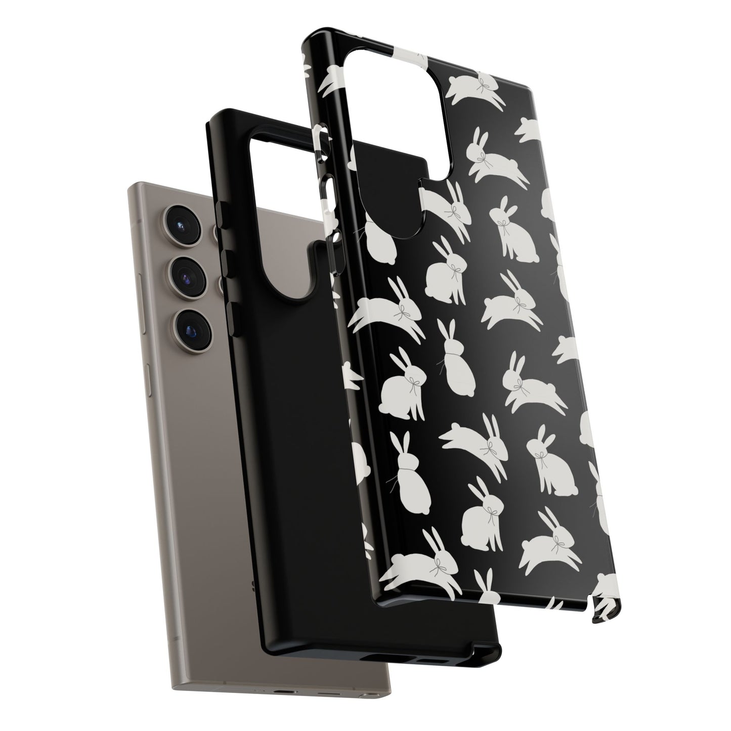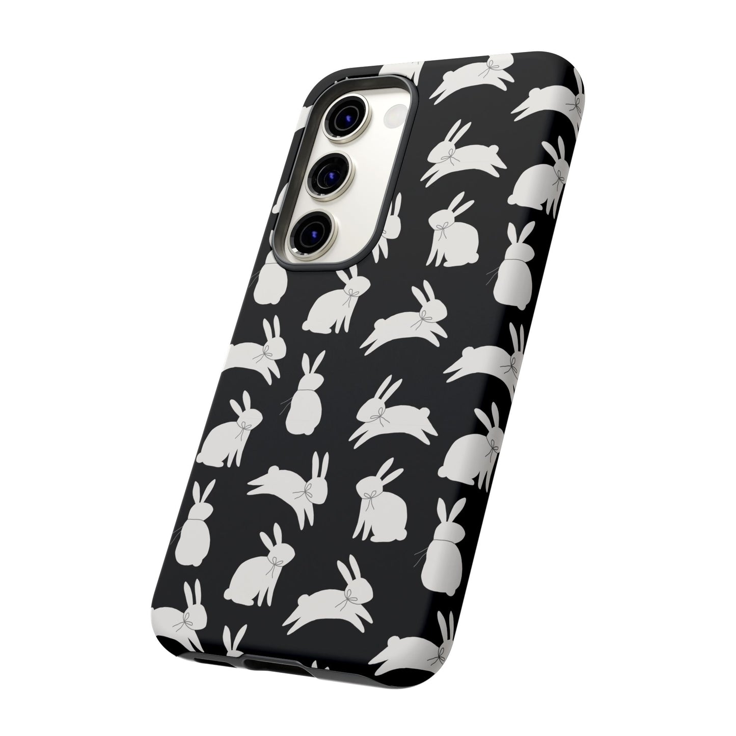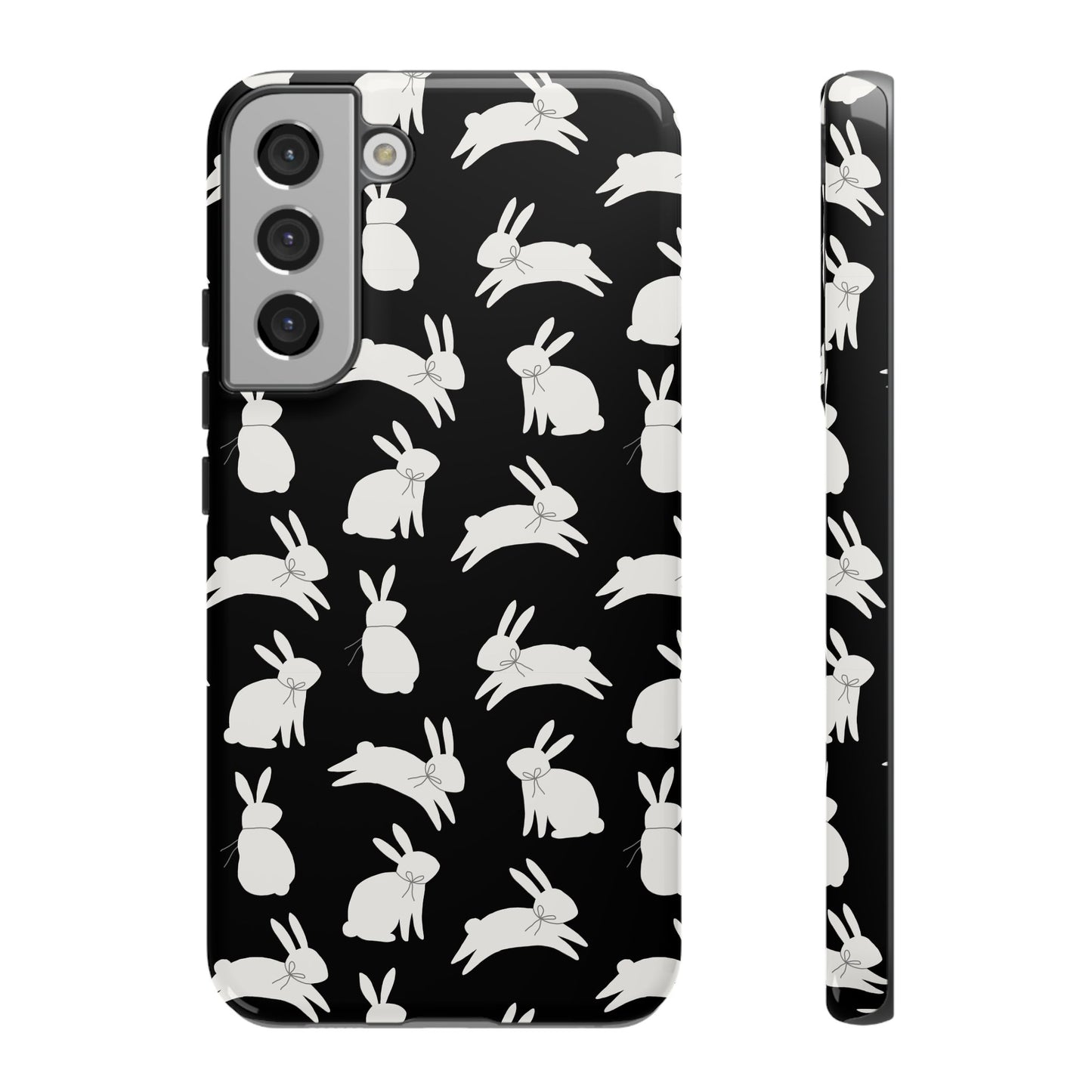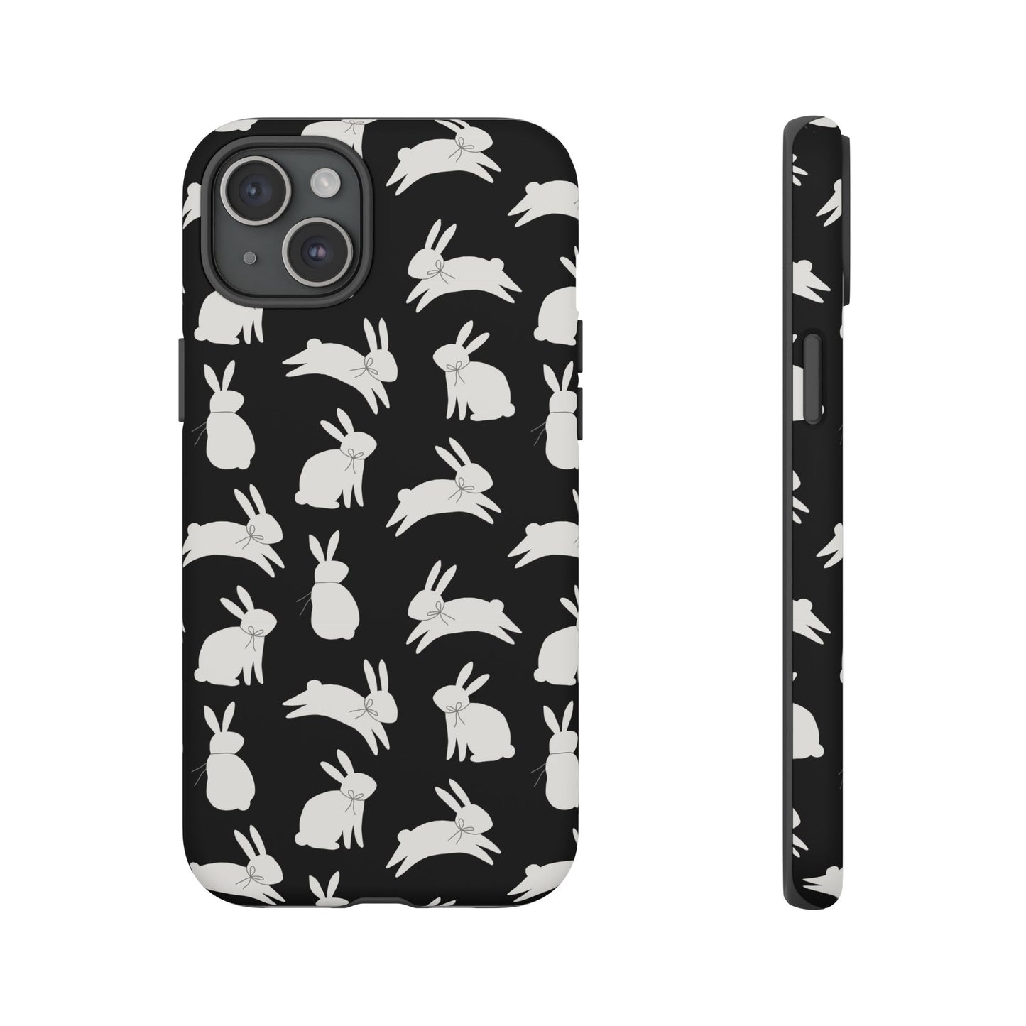 This glossy black bunny-patterned Tough Case is the perfect blend of playful vibes and serious protection. Covered in a chic all-over print of bow-tied bunnies, this case is here to turn heads and take hits (yep, itβs got a tough shell for a reason).