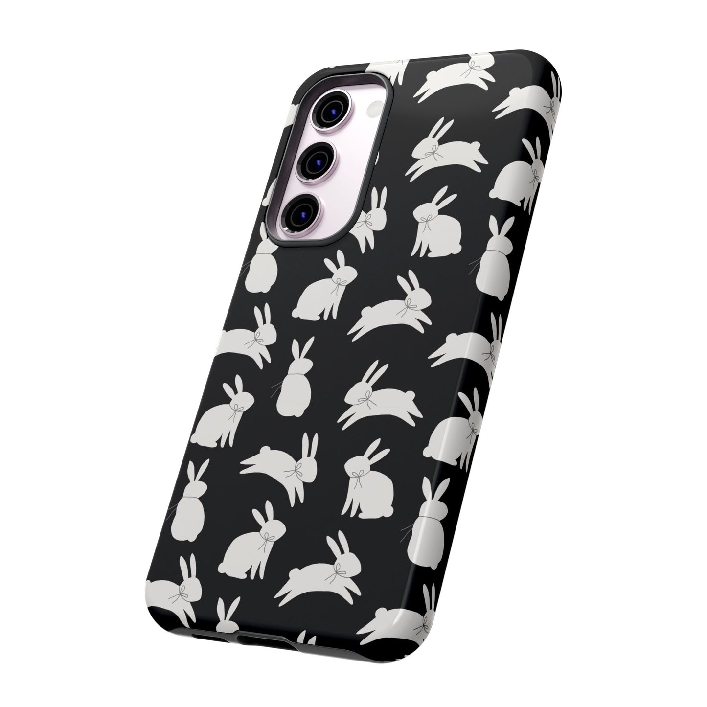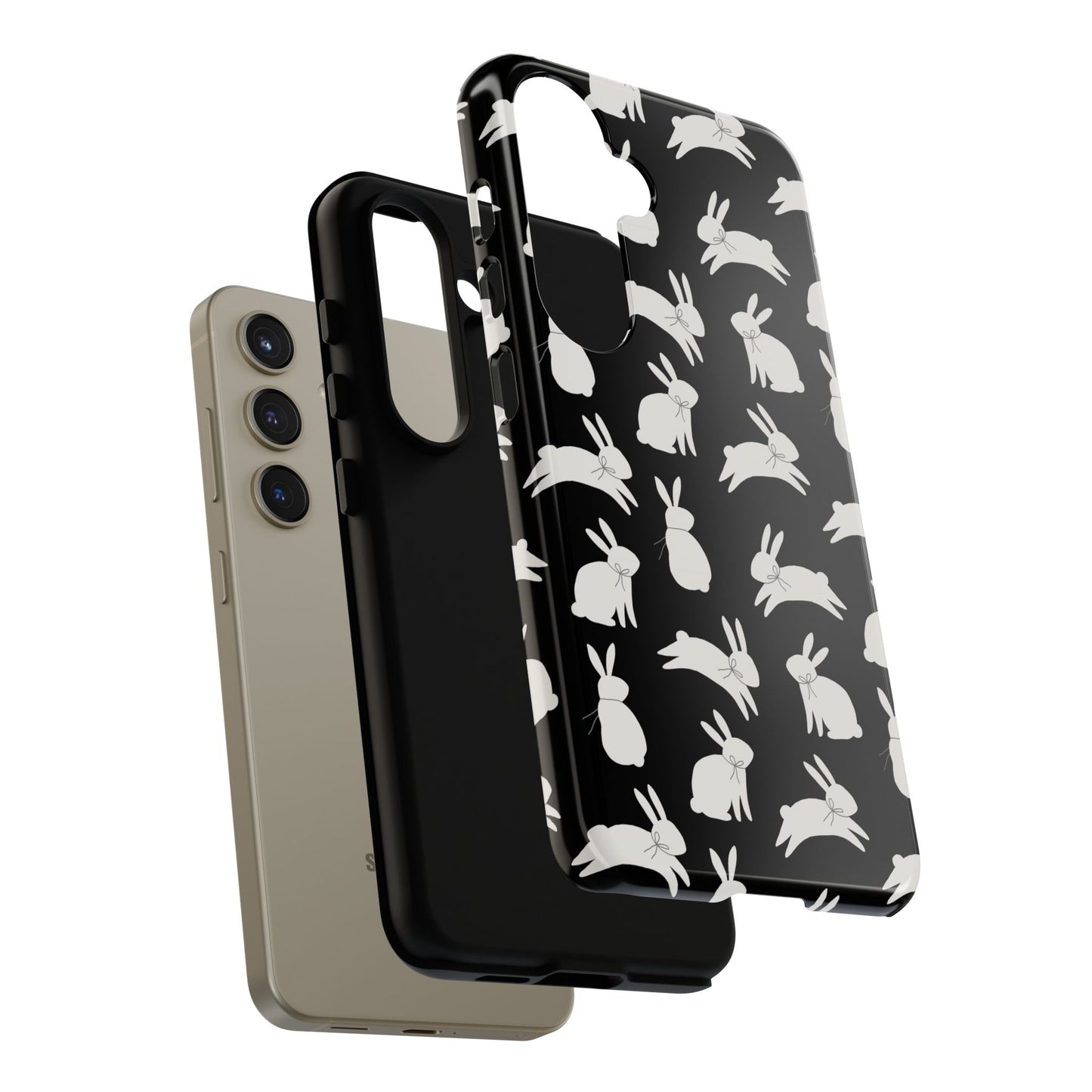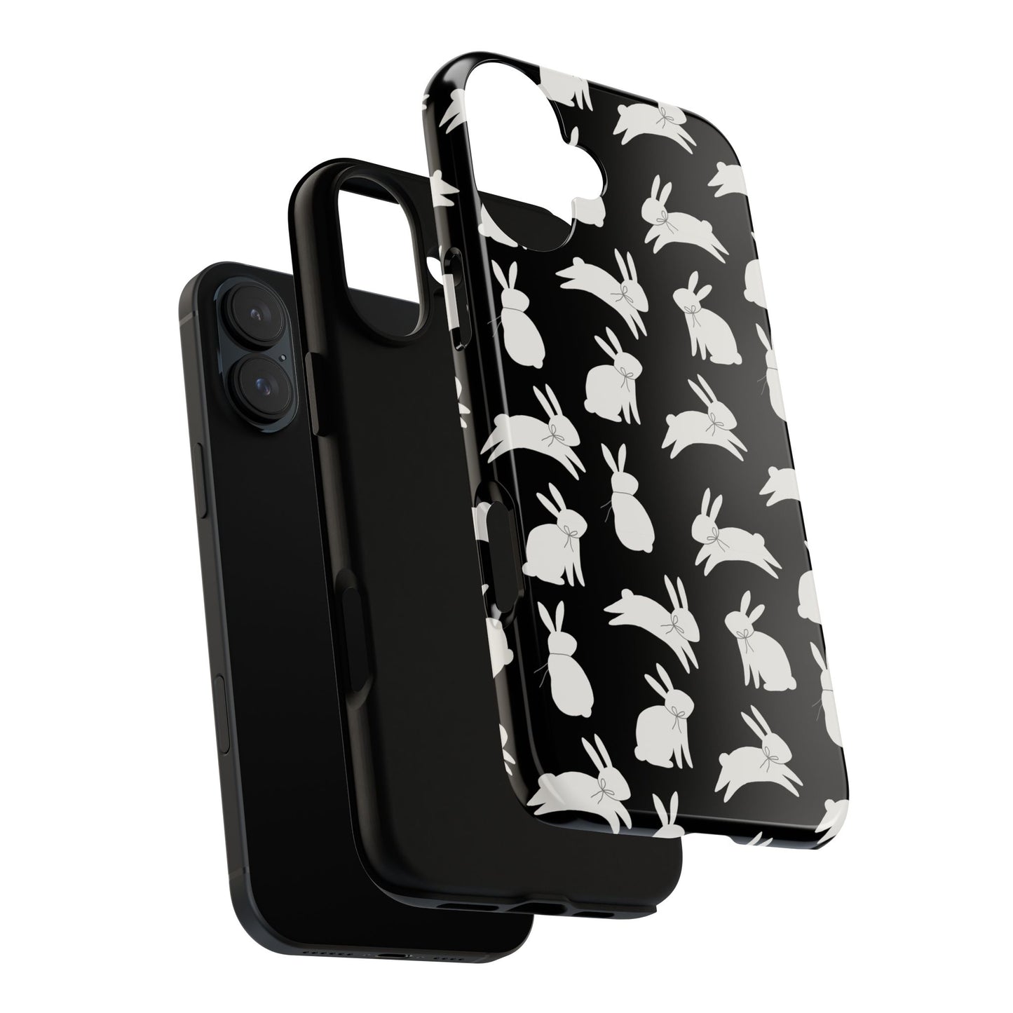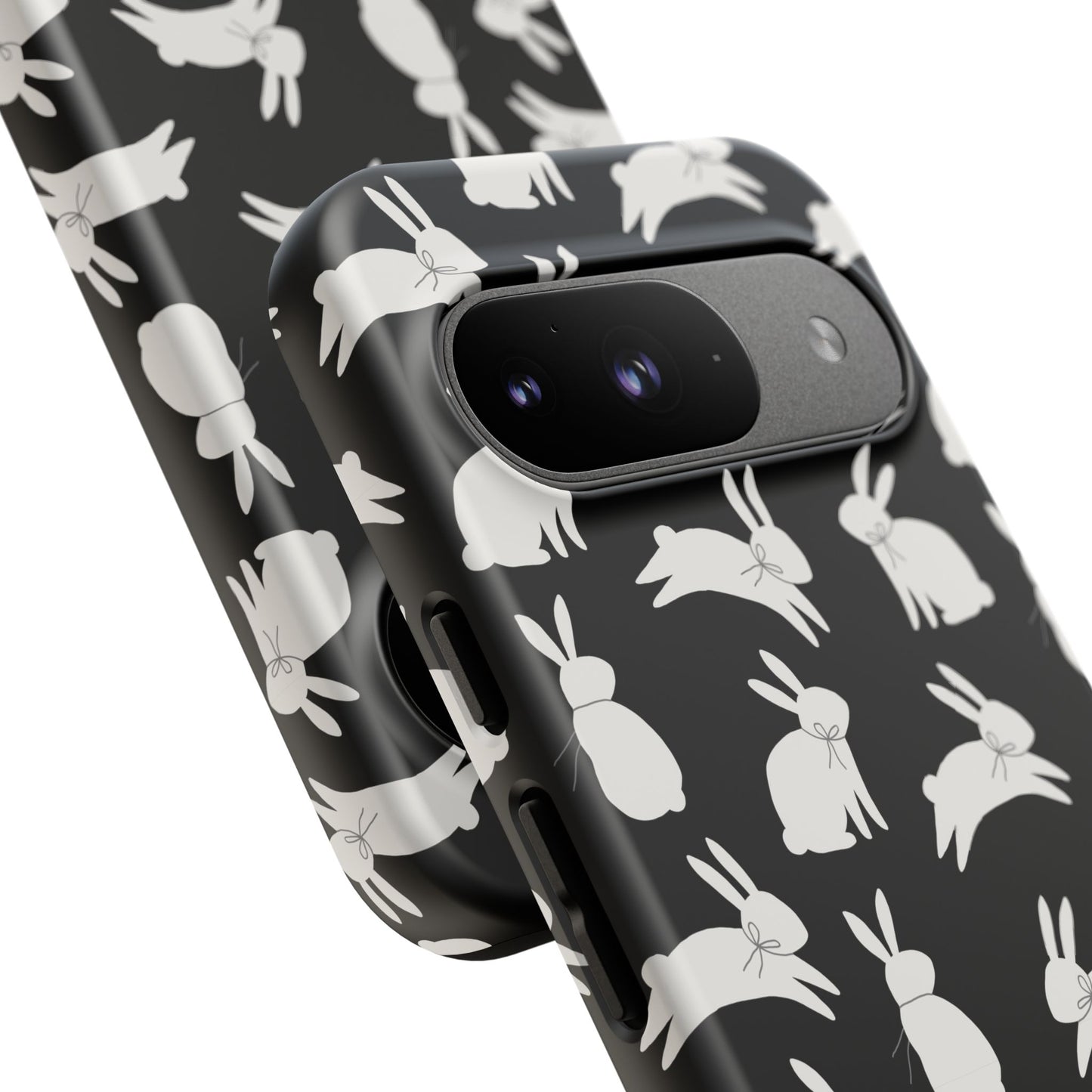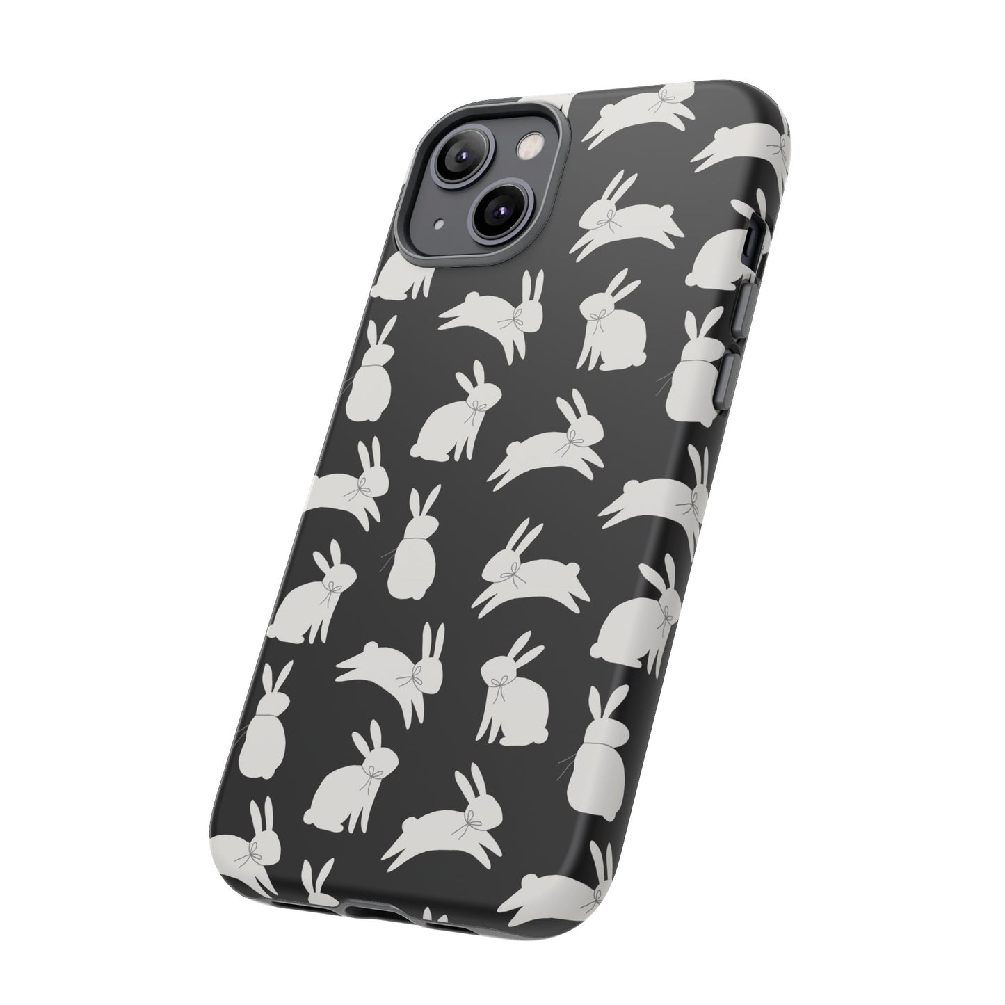 This glossy black bunny-patterned Tough Case is the perfect blend of playful vibes and serious protection. Covered in a chic all-over print of bow-tied bunnies, this case is here to turn heads and take hits (yep, itβs got a tough shell for a reason).
