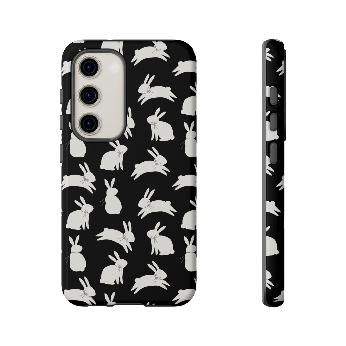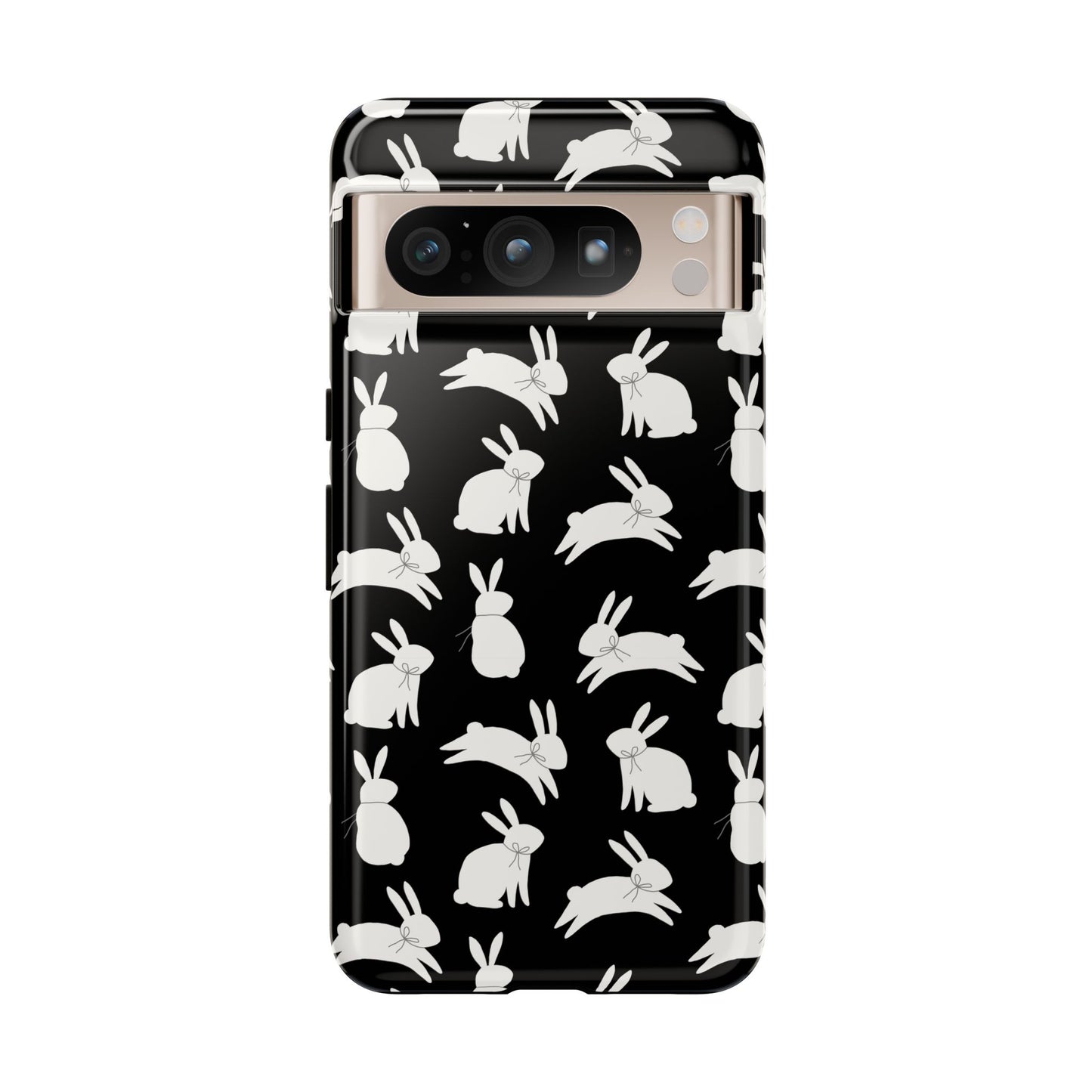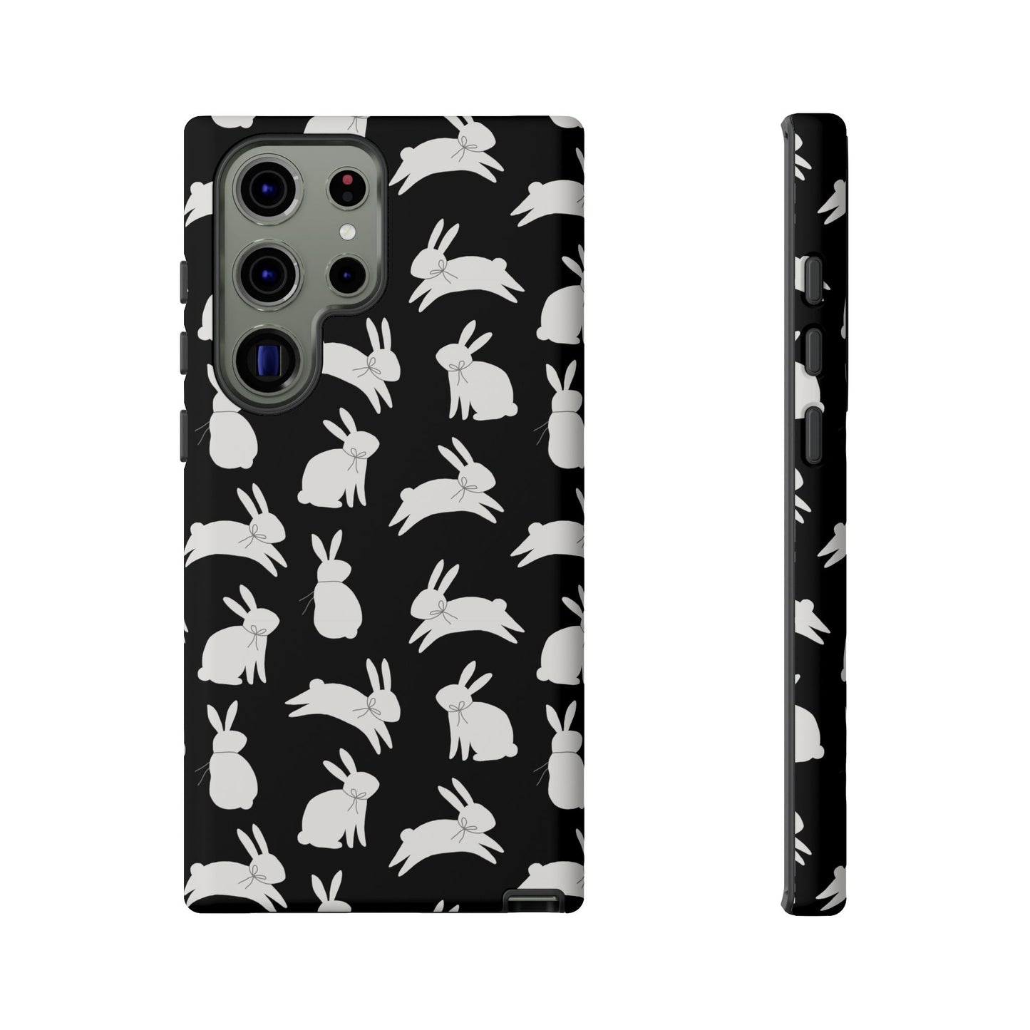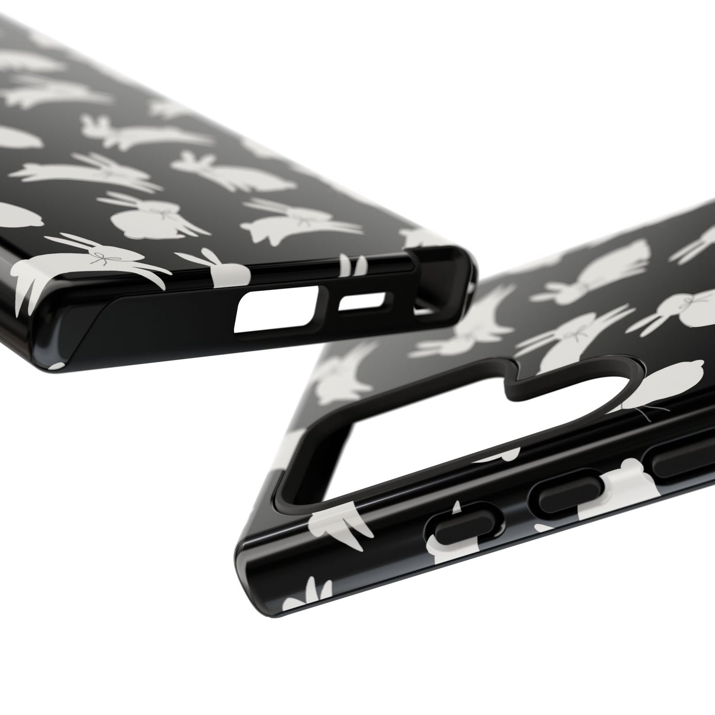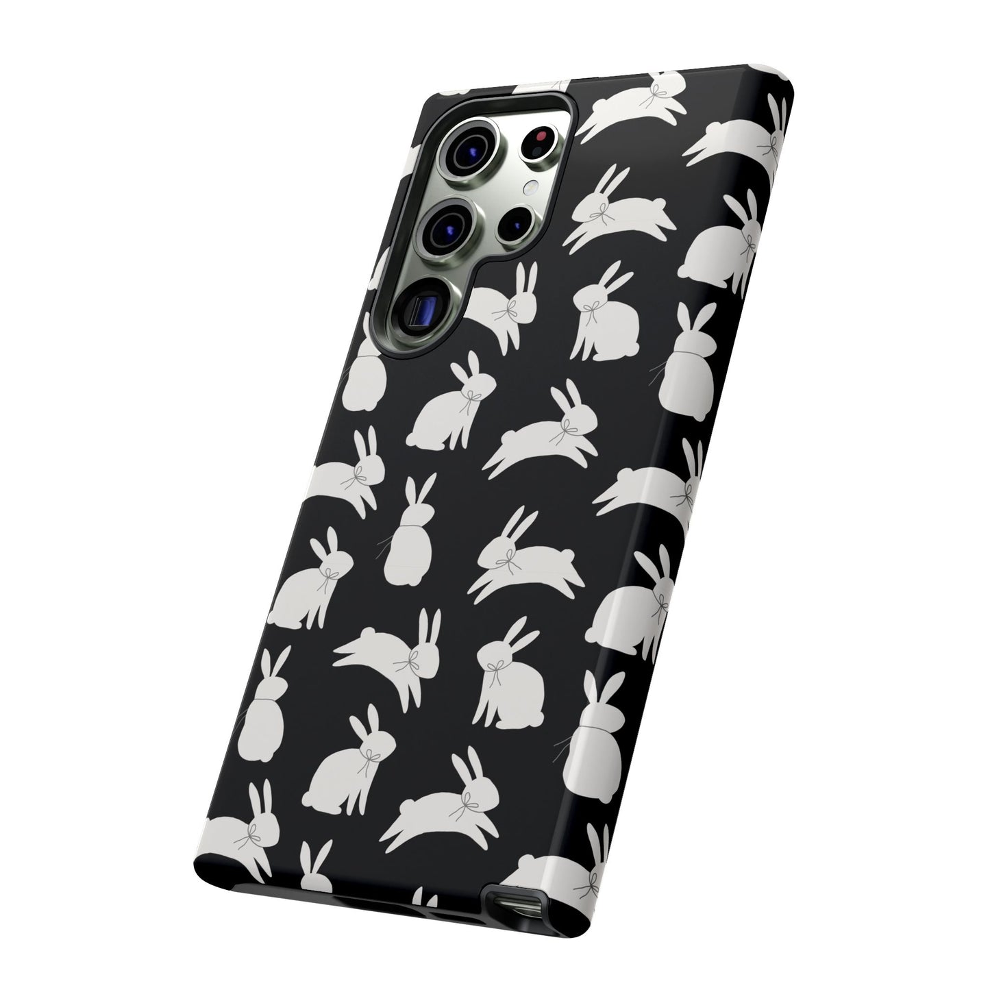 This glossy black bunny-patterned Tough Case is the perfect blend of playful vibes and serious protection. Covered in a chic all-over print of bow-tied bunnies, this case is here to turn heads and take hits (yep, itβs got a tough shell for a reason).