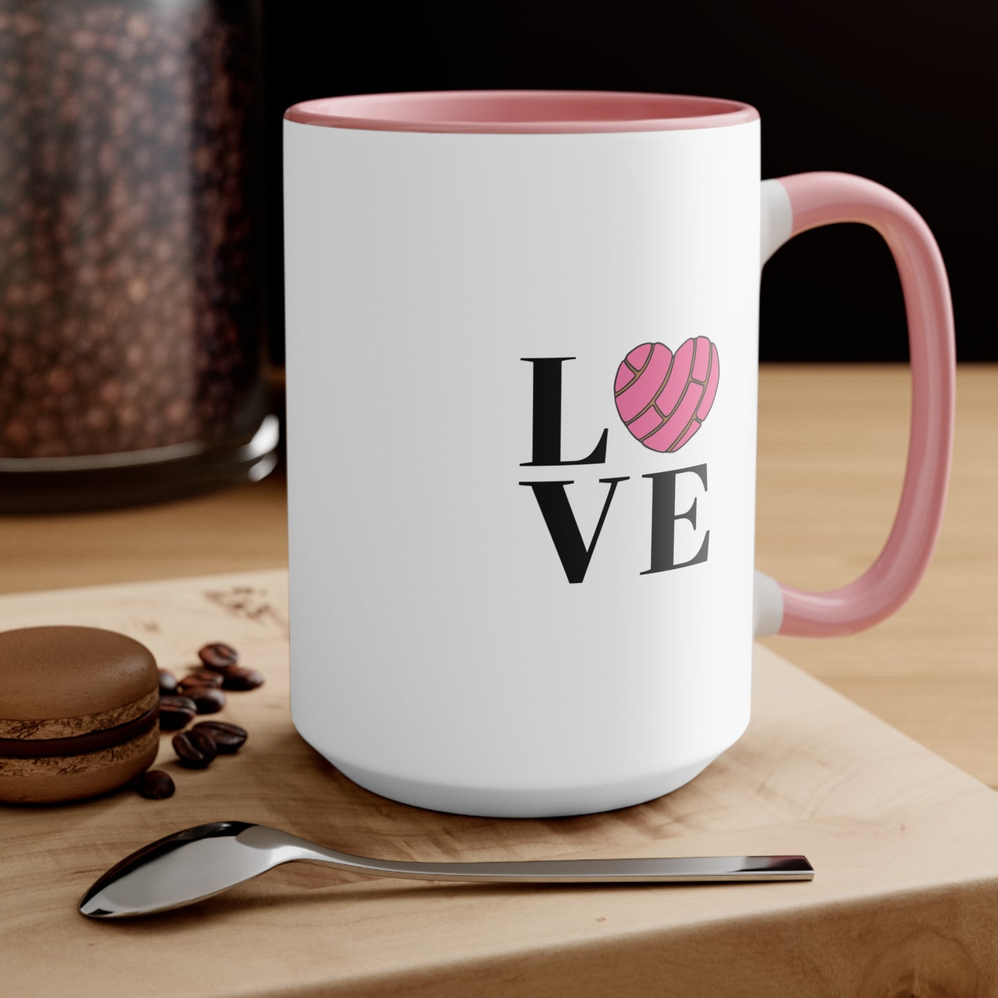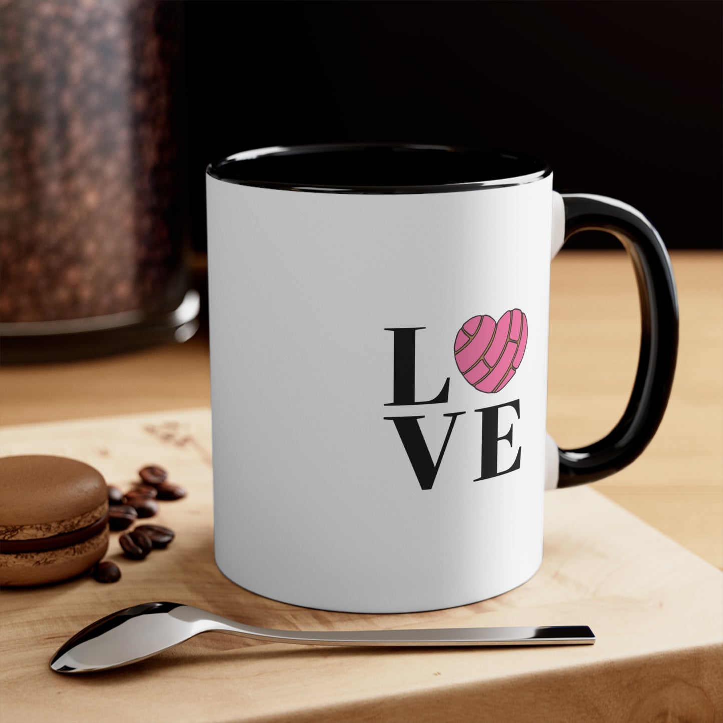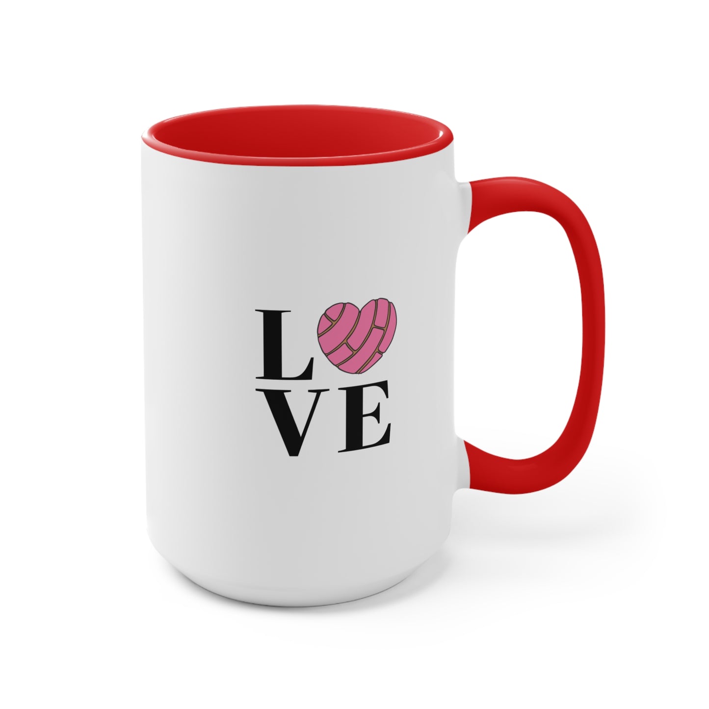 Start your day with sweetness and love in the Love Conchas accent mug! Featuring a fun "LOVE" design with a concha-shaped heart, this mug is a must-have for fans of Mexican sweet bread and cozy mornings. Made from durable ceramic with a stylish two-tone design, it’s available in 11oz and 15oz sizes and comes in three charming color options. Microwave and dishwasher safe, this mug is as delightful as your favorite pan dulce.