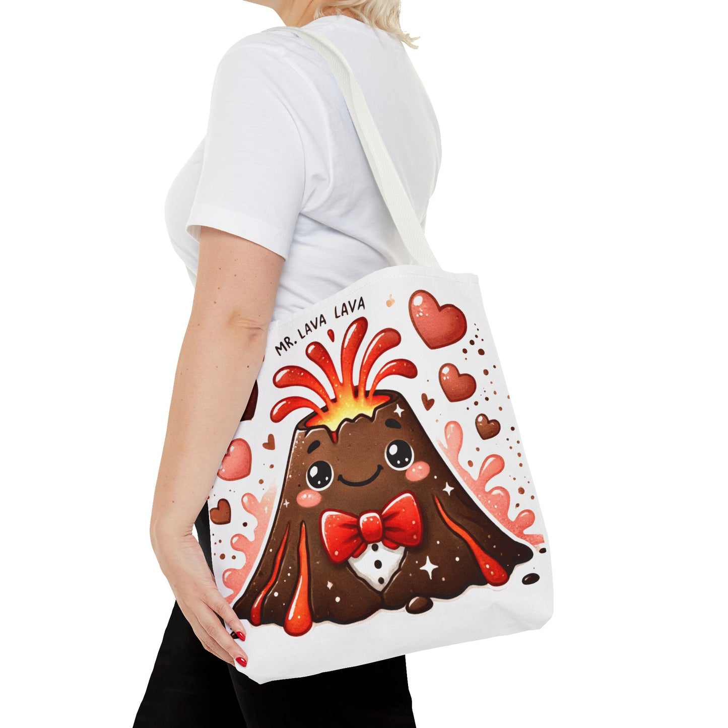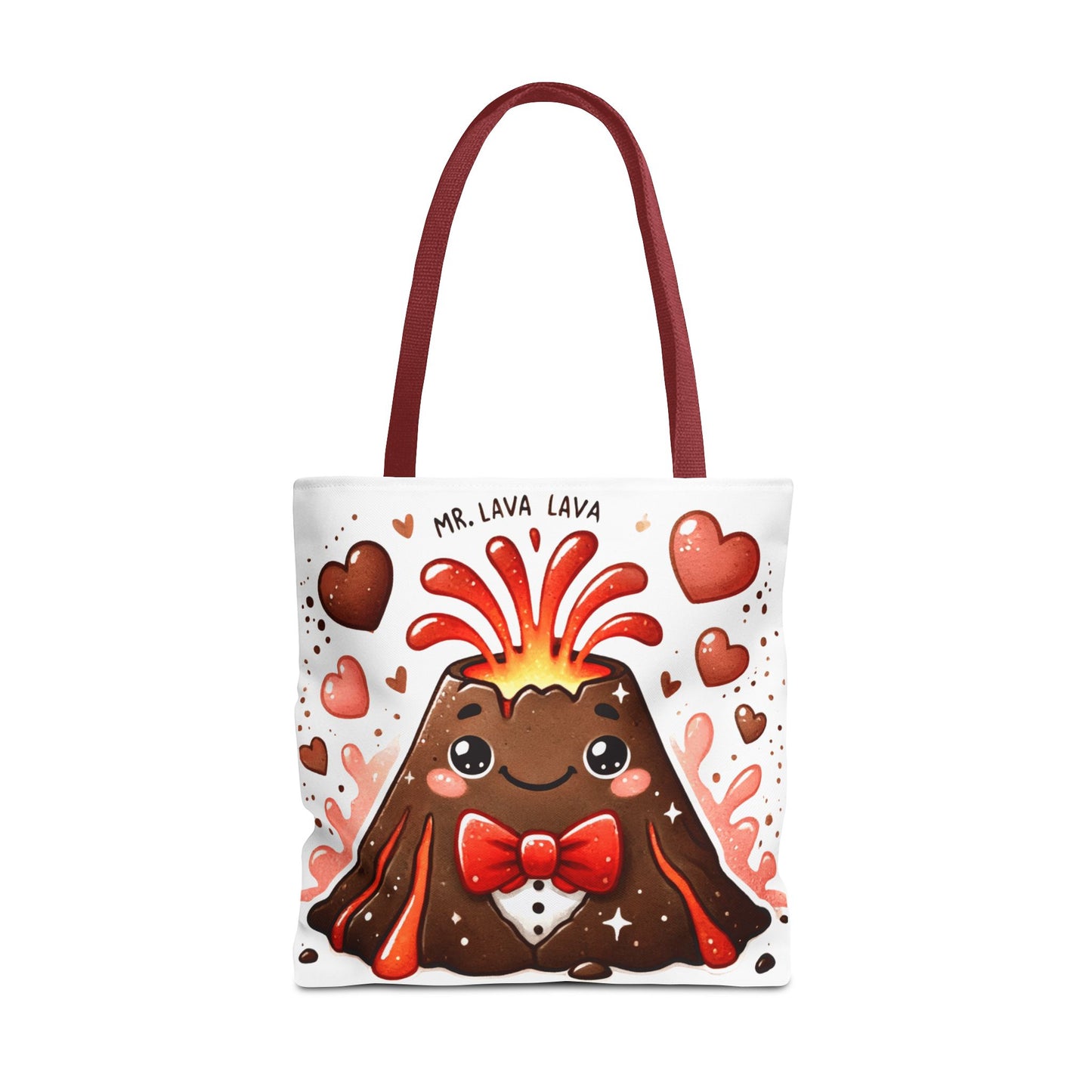 Carry sophistication with a fiery twist with the "Mr. Lava Lava in a Tux" Tote Bag! Featuring our charming, dapper volcano complete with a red bow tie and an eruption of hearts, this tote is perfect for adding a playful yet polished vibe to your everyday adventures. Whether it’s books, groceries, or daily essentials, this tote combines durability and style in one hot package. 🔥❤️