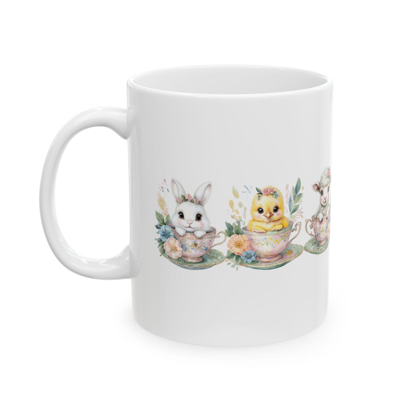 “Tea Time Trio” – Ceramic Mug ☕🐣🌸 (11oz, 15oz)