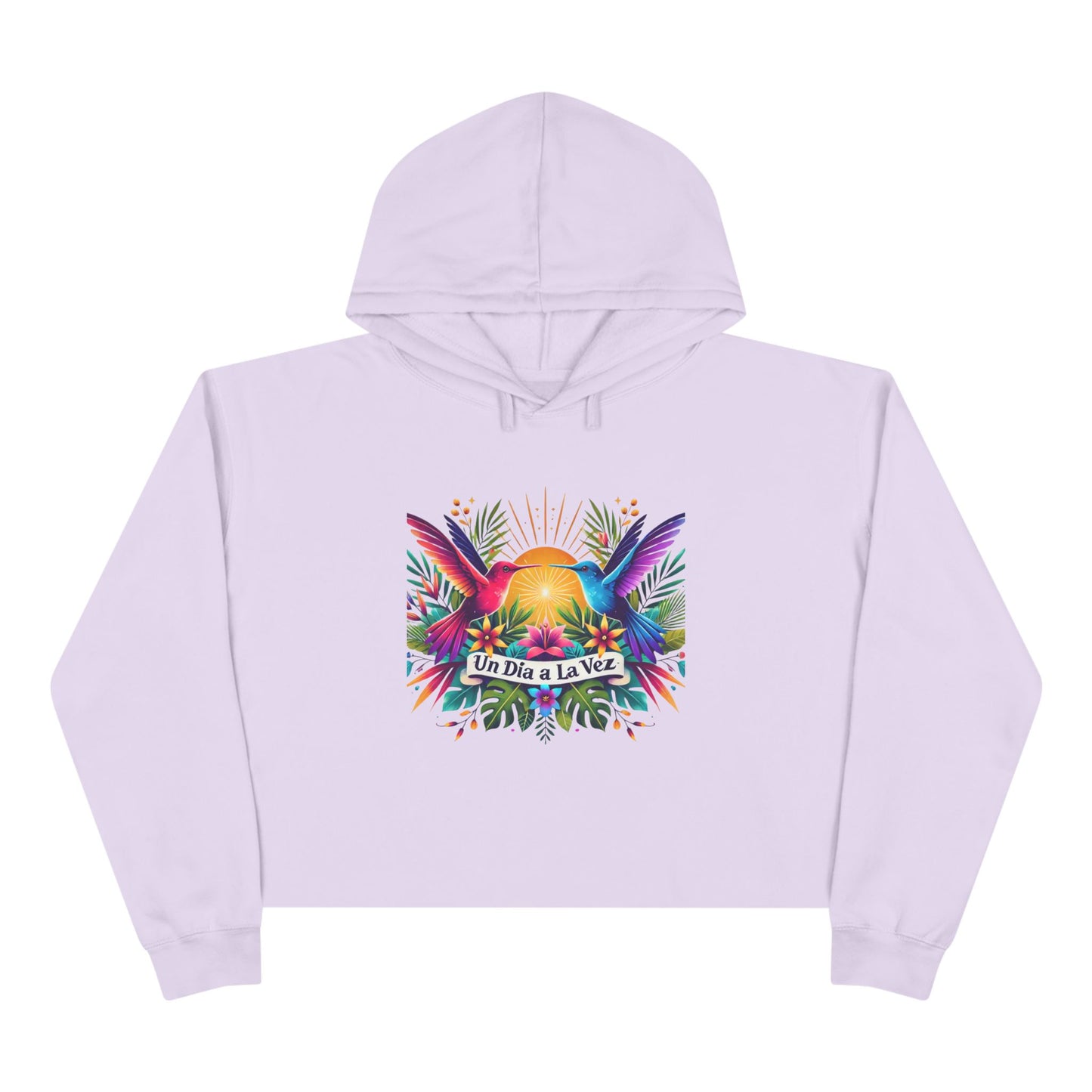 Elevate your wardrobe with the Un Día a La Vez Tropical Sunrise Cropped Hoodie. Featuring vibrant hummingbirds, lush tropical florals, and a glowing sunrise, this hoodie is a perfect blend of comfort and inspiration. Its relaxed cropped fit, silky-soft cotton/polyester blend, and lightweight feel make it your go-to for casual yet chic looks. 🌺✨
