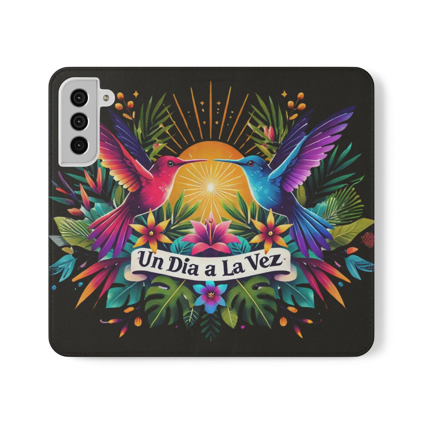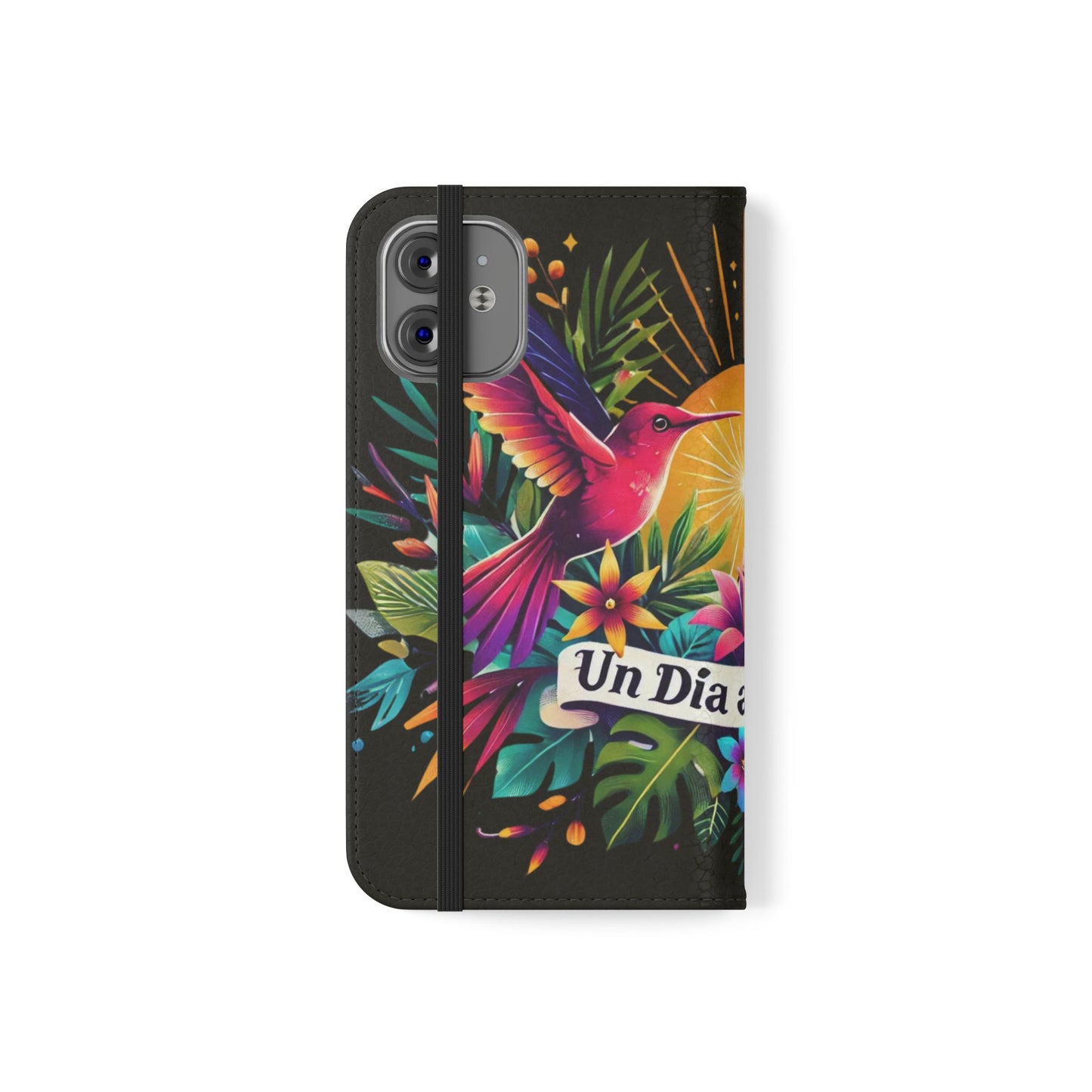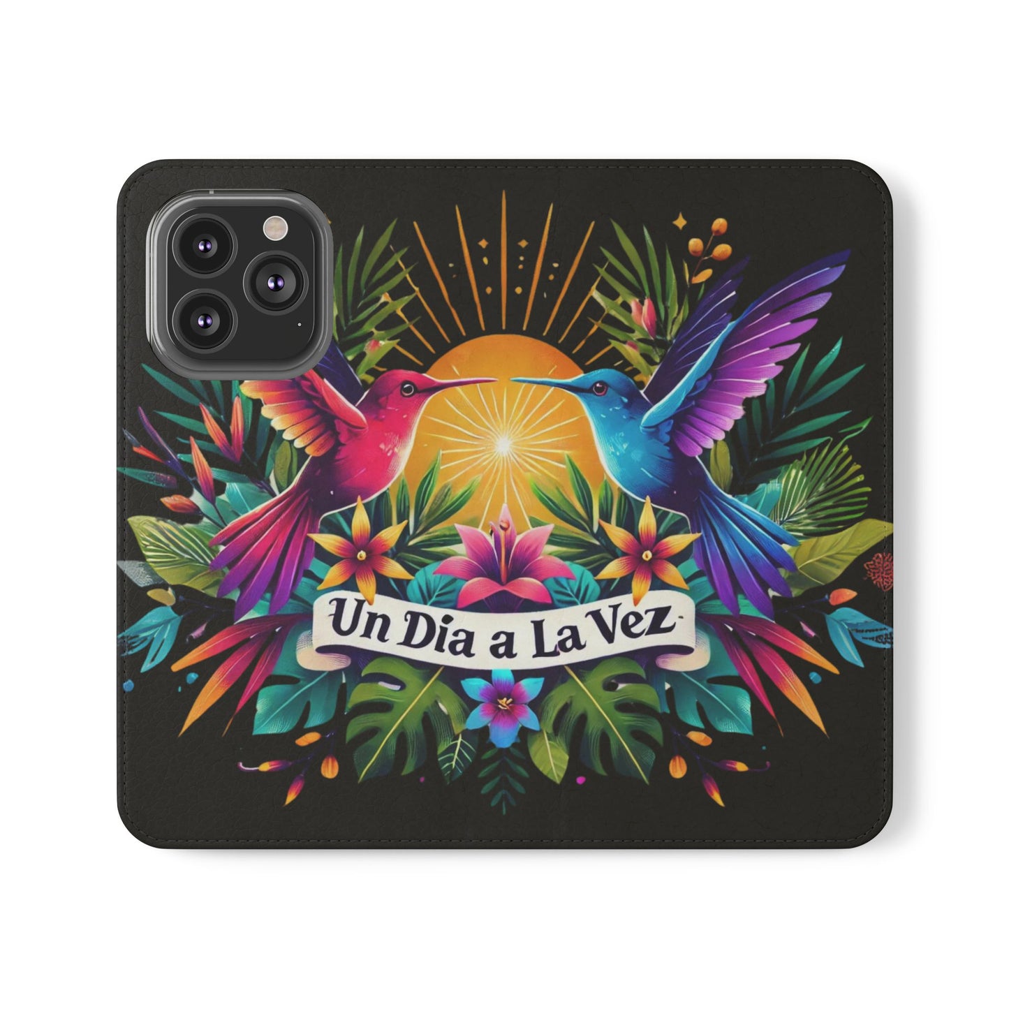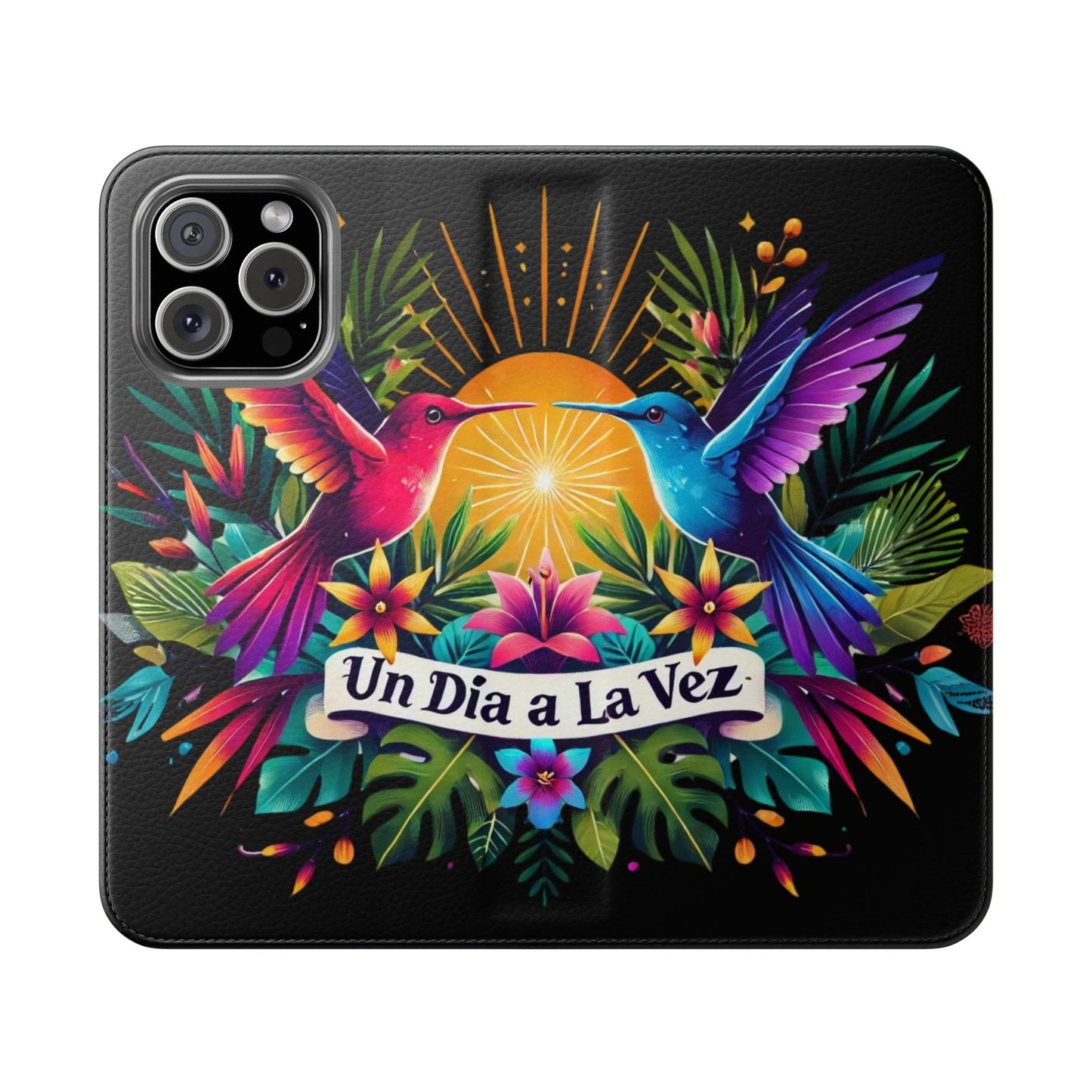 Carry inspiration and protection wherever you go with the "Un Día a La Vez" Vibrant Midnight Flip Case. Featuring a dazzling design of radiant hummingbirds, lush florals, and a glowing sunrise against a bold black backdrop, this case is as stunning as it is functional. With vibrant colors, sturdy faux leather, and built-in features for convenience, it’s the perfect blend of style and practicality for your phone. 🌺✨