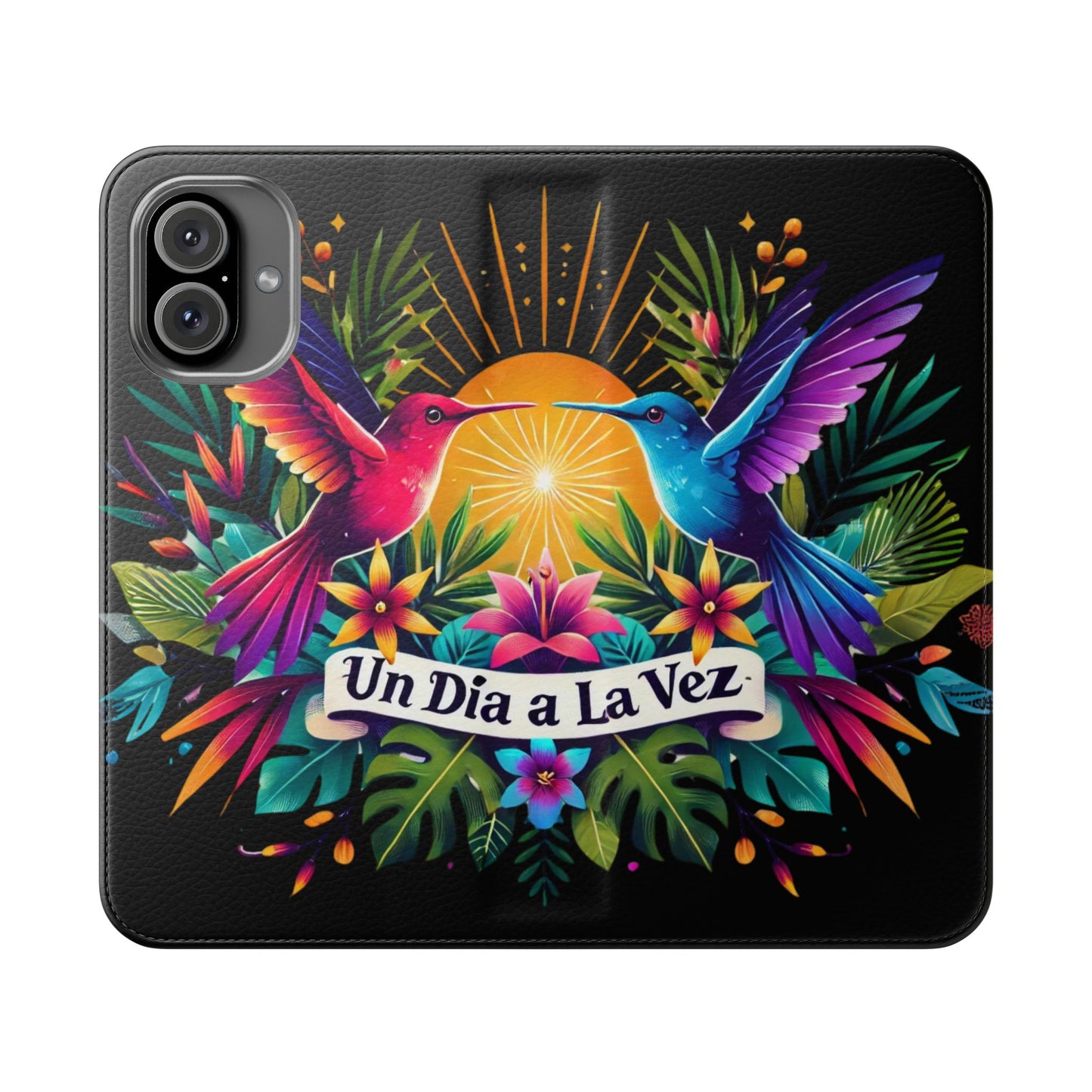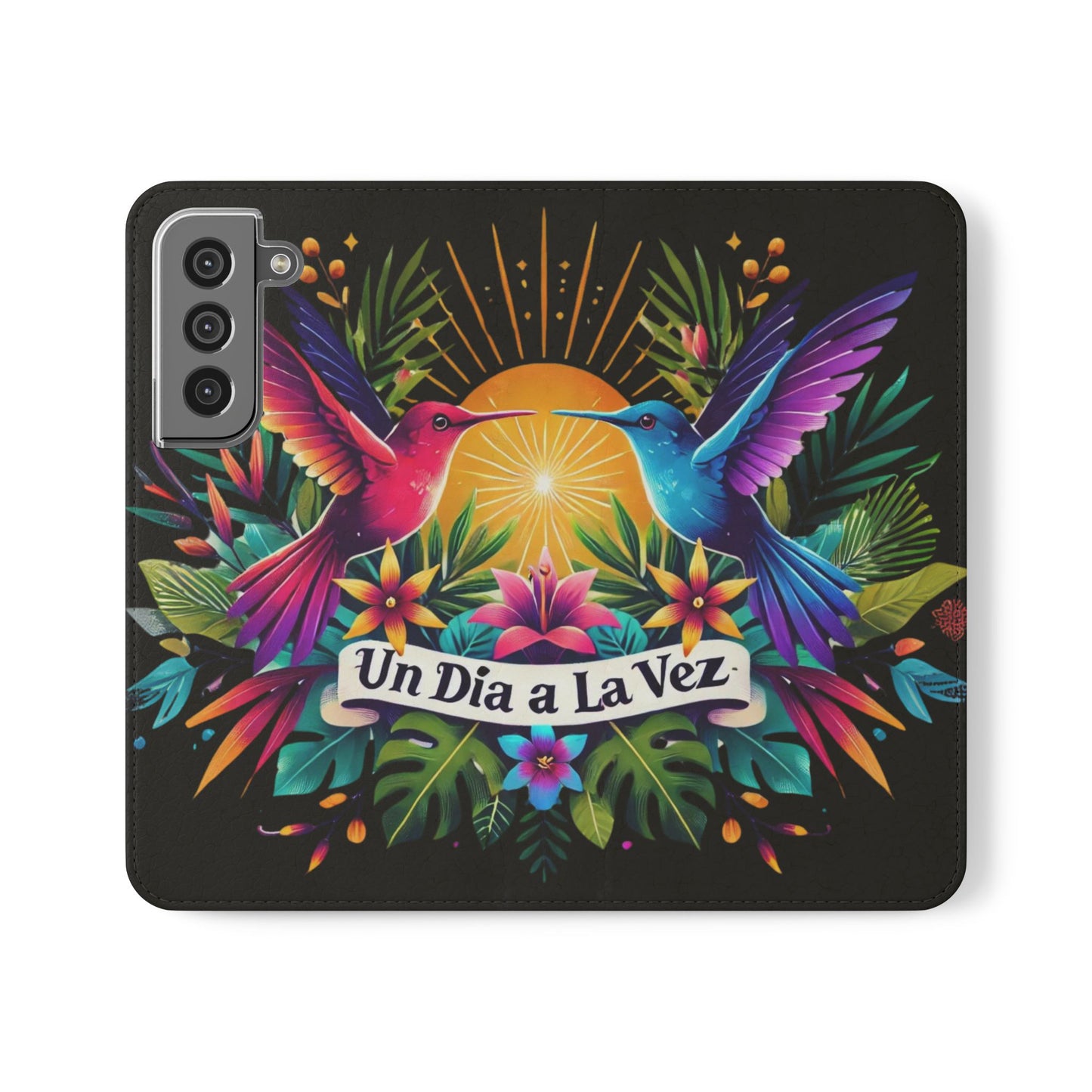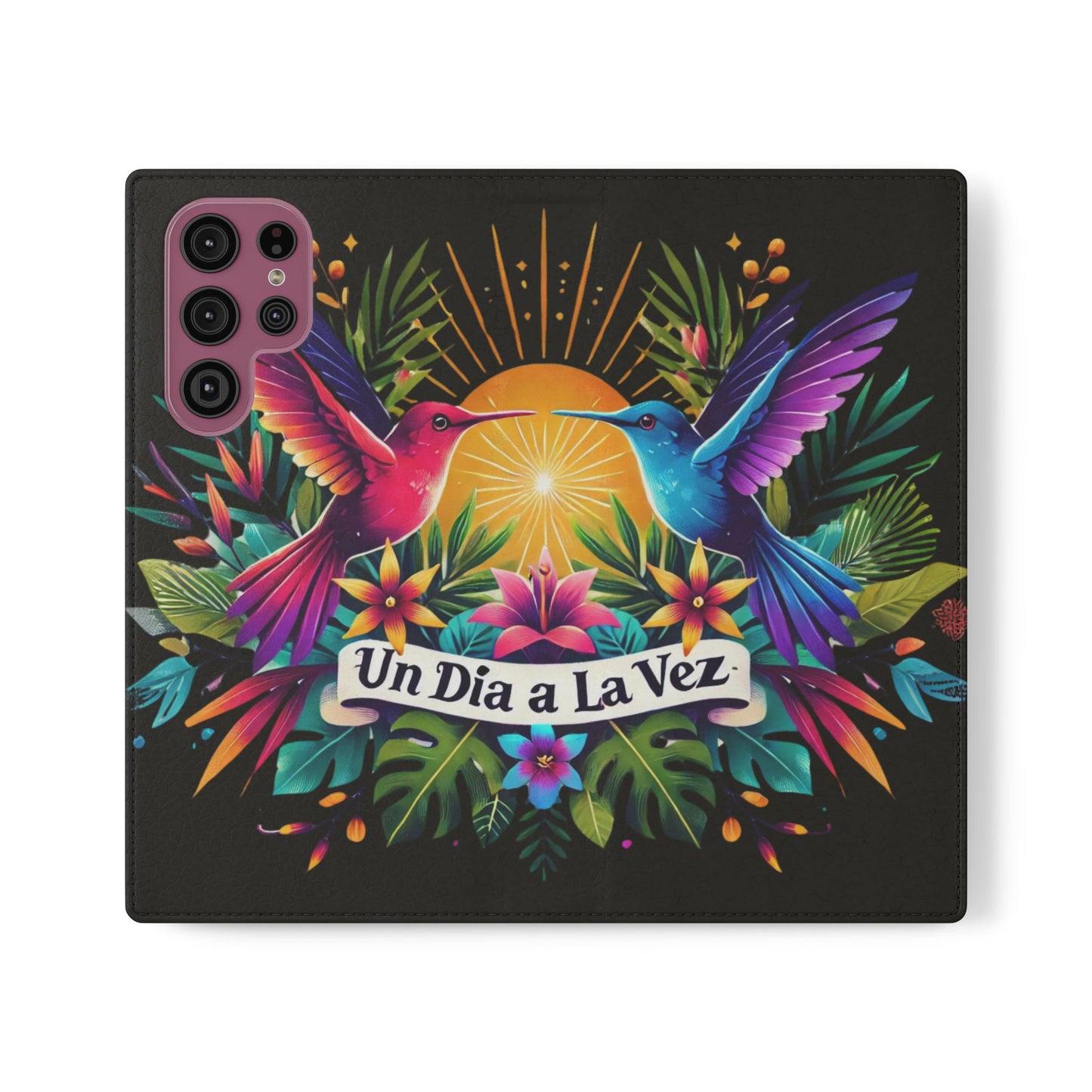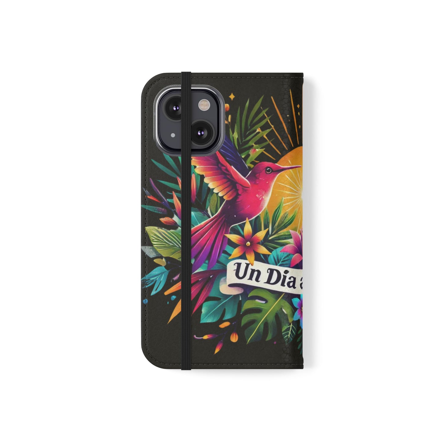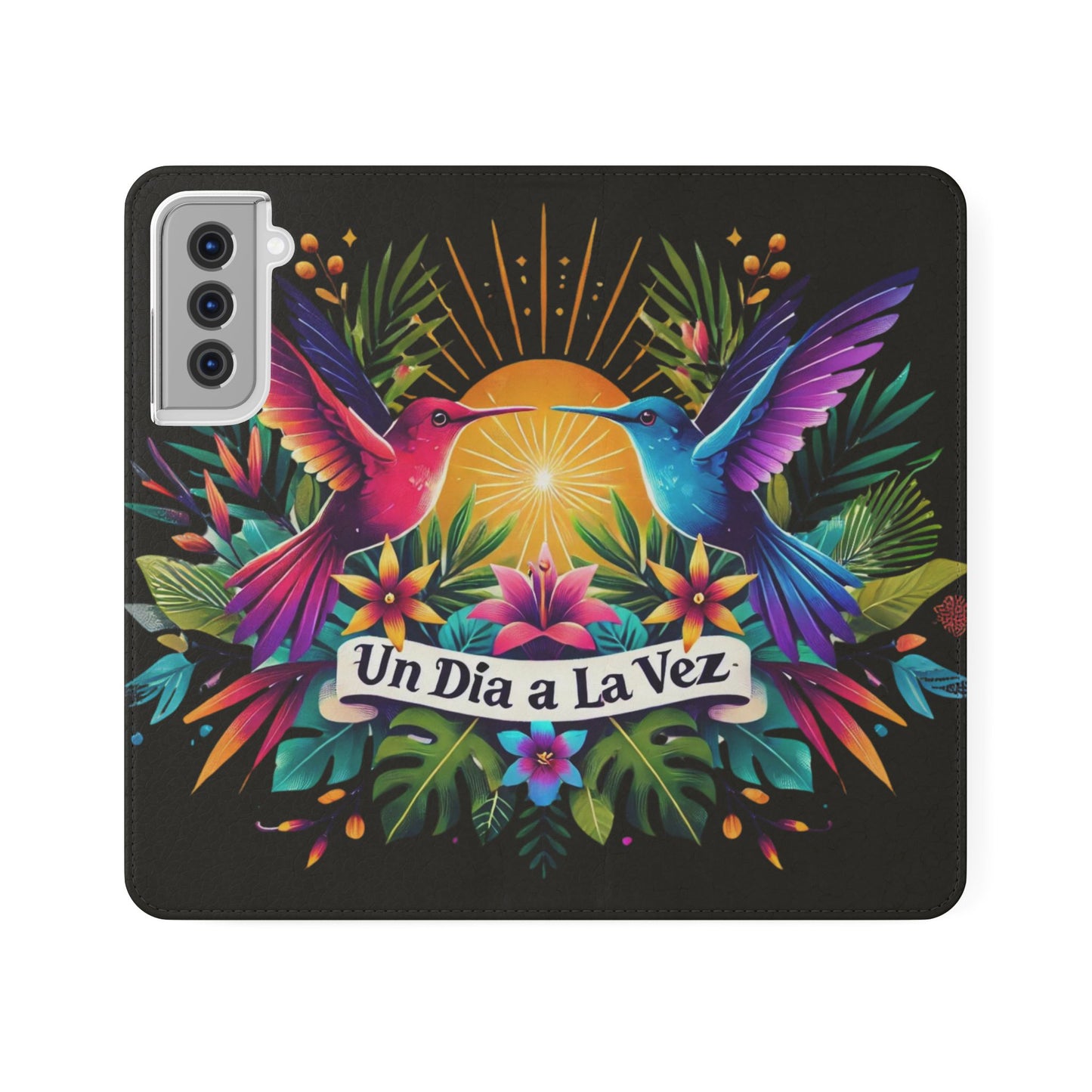 Carry inspiration and protection wherever you go with the "Un Día a La Vez" Vibrant Midnight Flip Case. Featuring a dazzling design of radiant hummingbirds, lush florals, and a glowing sunrise against a bold black backdrop, this case is as stunning as it is functional. With vibrant colors, sturdy faux leather, and built-in features for convenience, it’s the perfect blend of style and practicality for your phone. 🌺✨