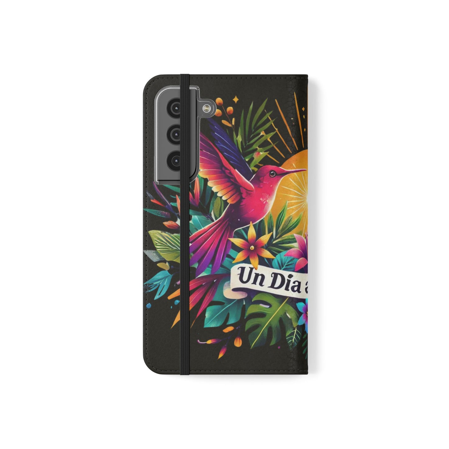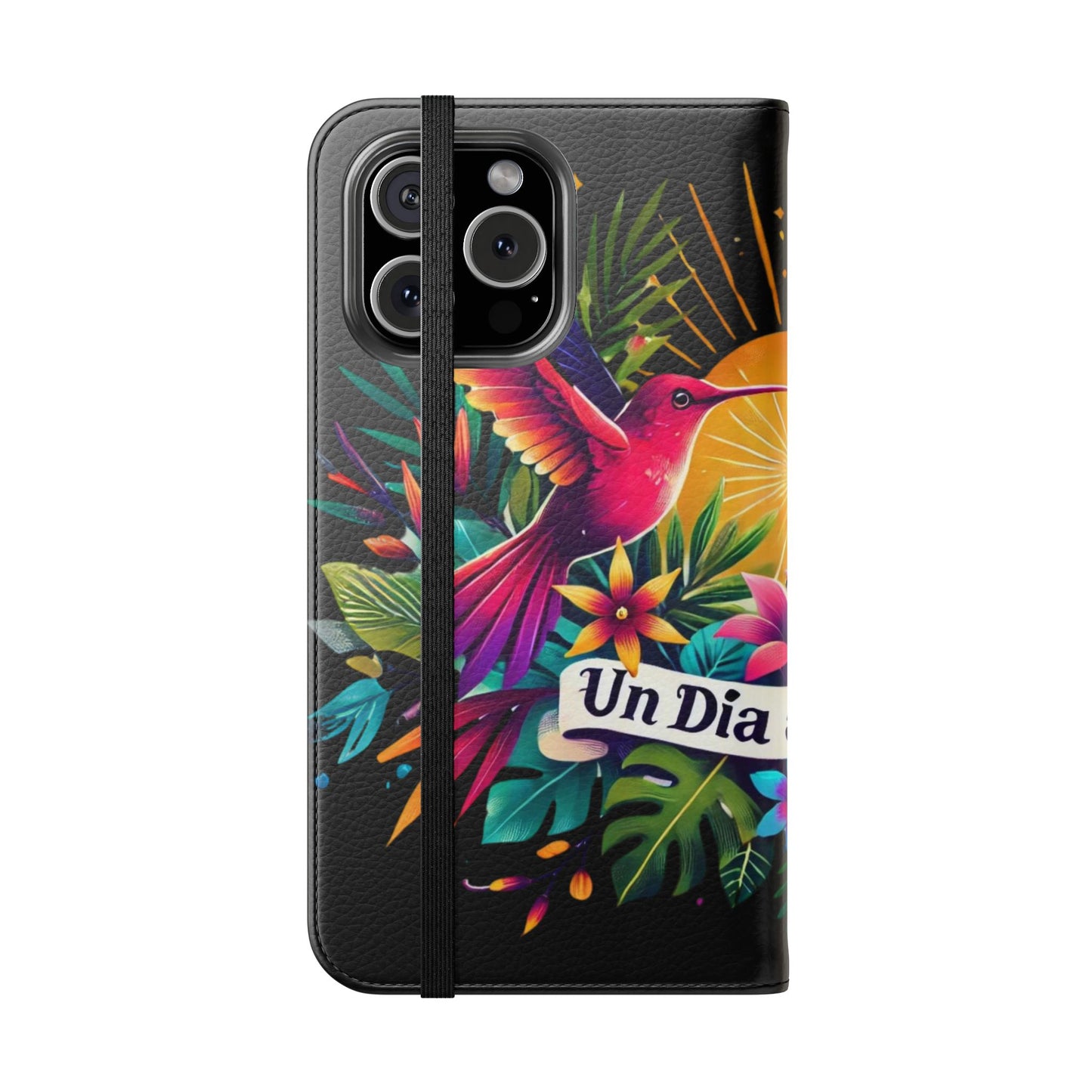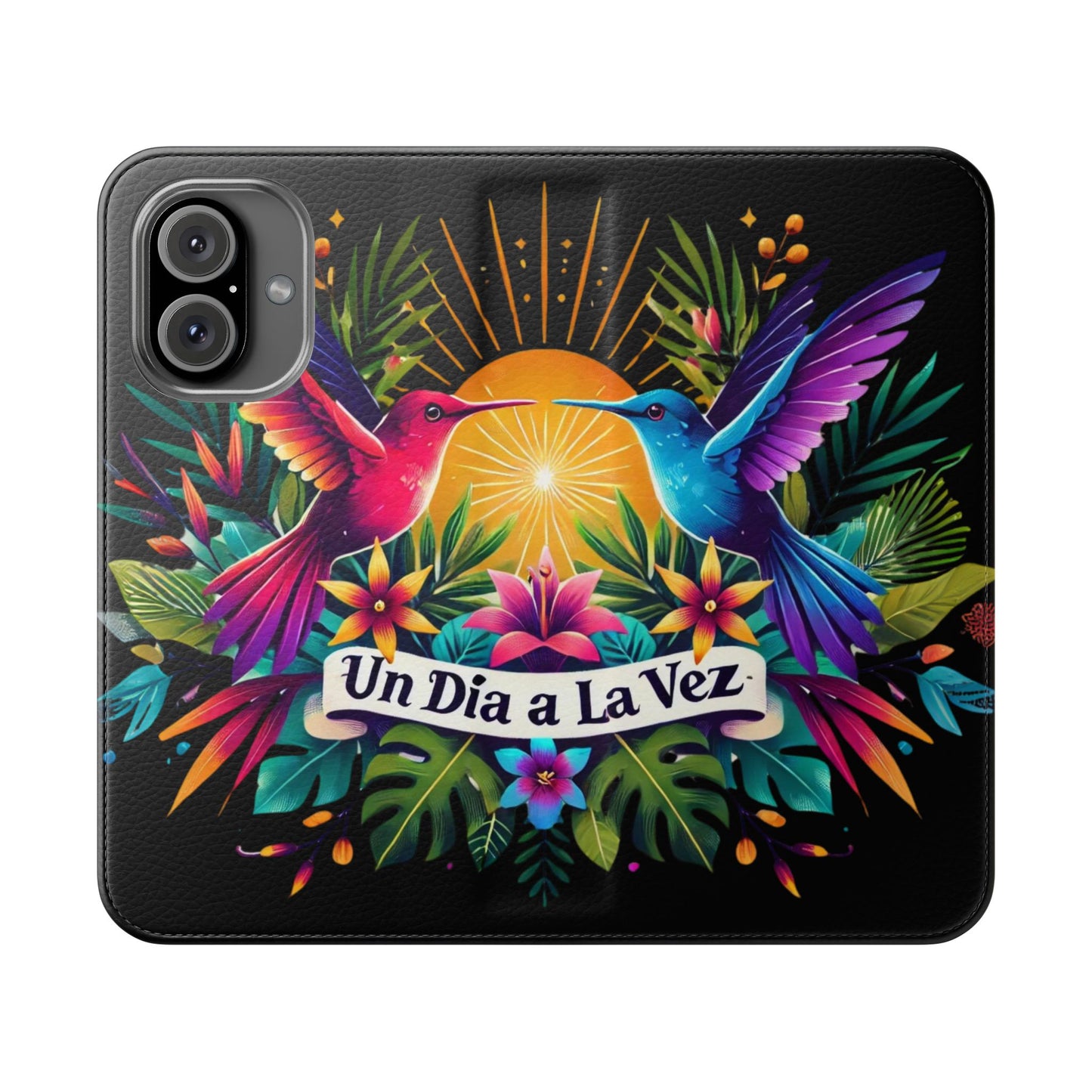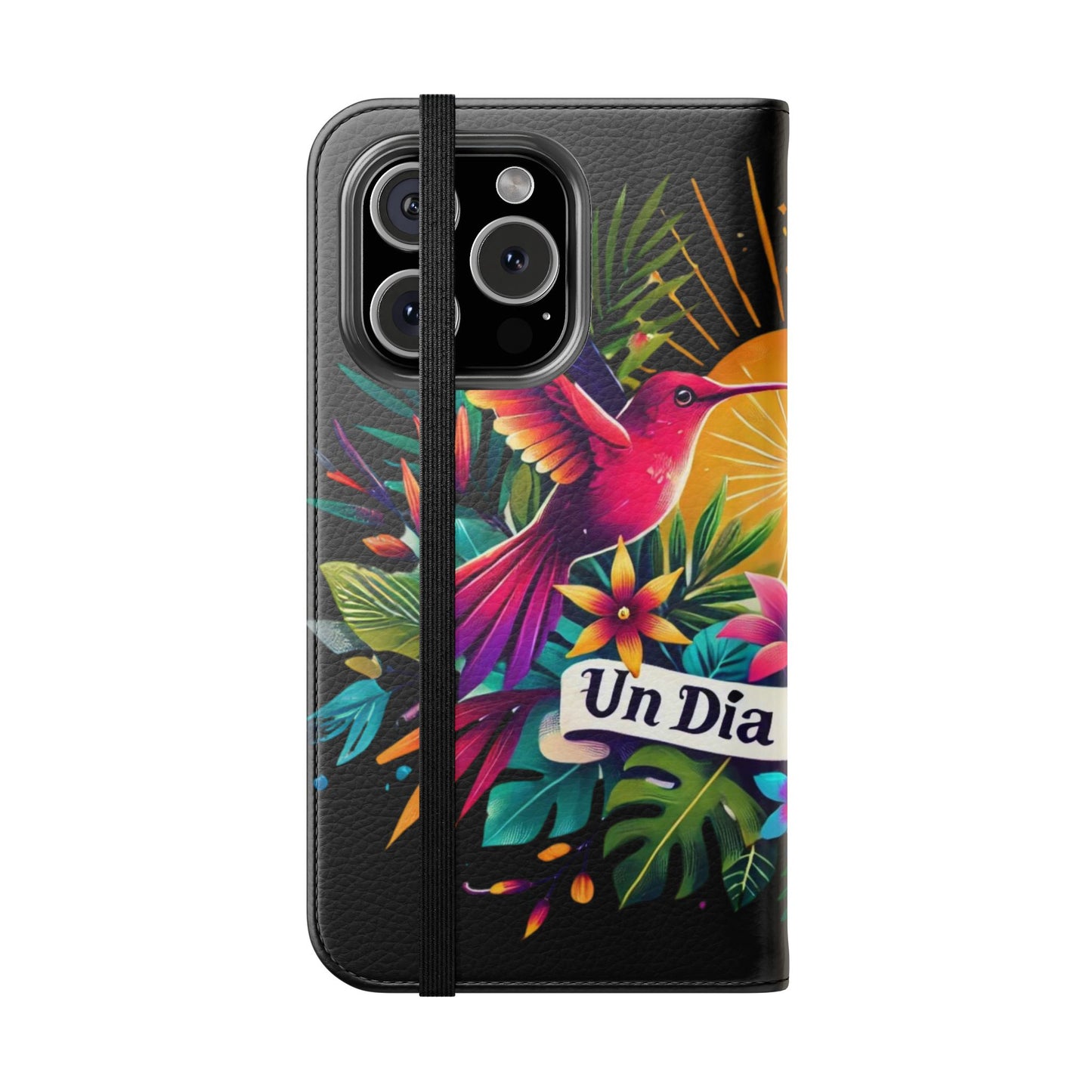 Carry inspiration and protection wherever you go with the "Un Día a La Vez" Vibrant Midnight Flip Case. Featuring a dazzling design of radiant hummingbirds, lush florals, and a glowing sunrise against a bold black backdrop, this case is as stunning as it is functional. With vibrant colors, sturdy faux leather, and built-in features for convenience, it’s the perfect blend of style and practicality for your phone. 🌺✨