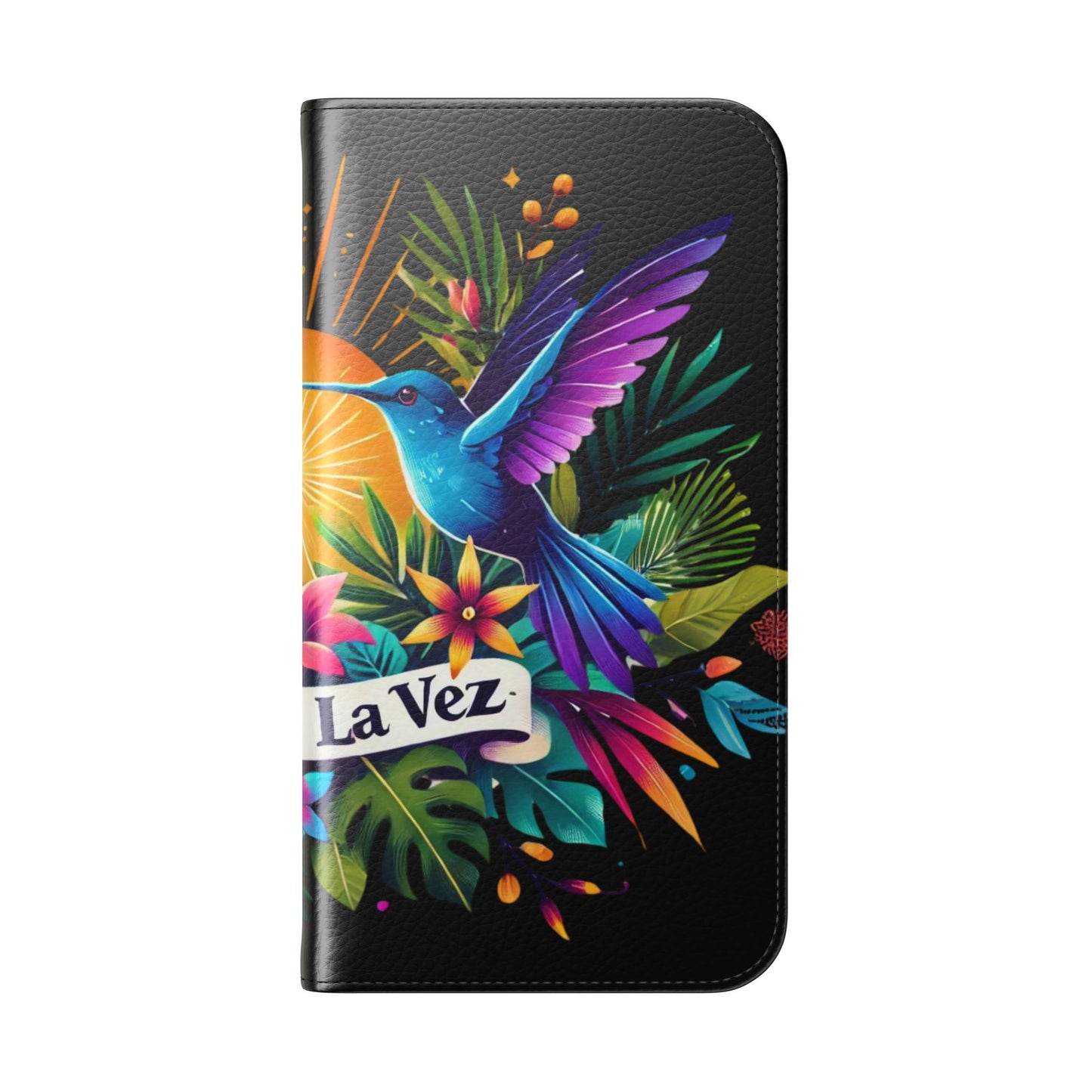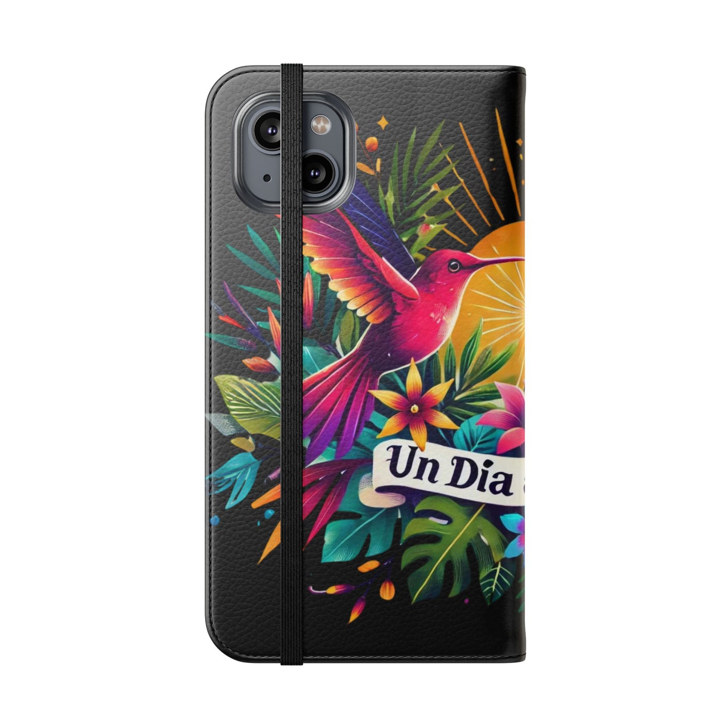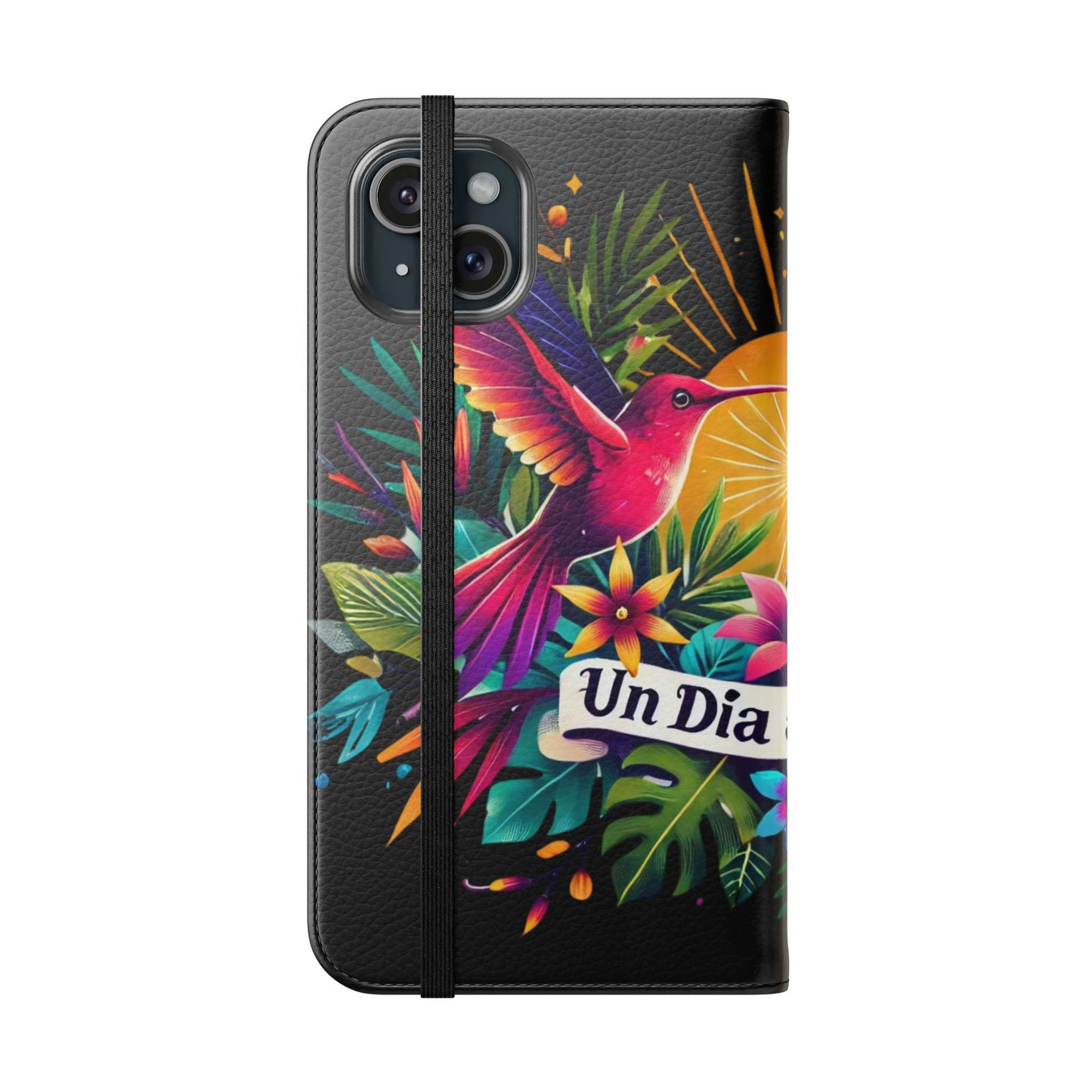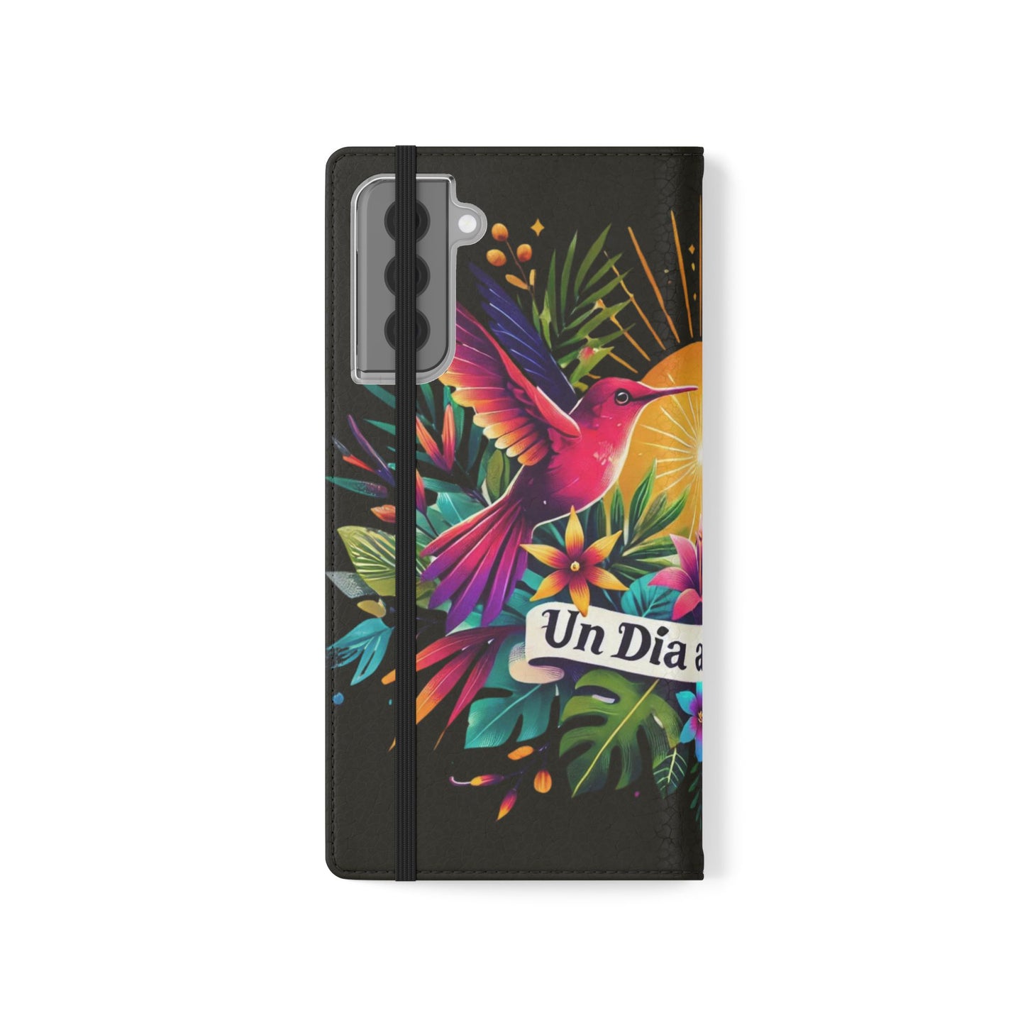 Carry inspiration and protection wherever you go with the "Un Día a La Vez" Vibrant Midnight Flip Case. Featuring a dazzling design of radiant hummingbirds, lush florals, and a glowing sunrise against a bold black backdrop, this case is as stunning as it is functional. With vibrant colors, sturdy faux leather, and built-in features for convenience, it’s the perfect blend of style and practicality for your phone. 🌺✨